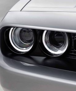 Conjunto de faros delanteros para Dodge Challenger con carcasa negra. Incluye 1 unidad para el lado del pasajero derecho. Fácil instalación.