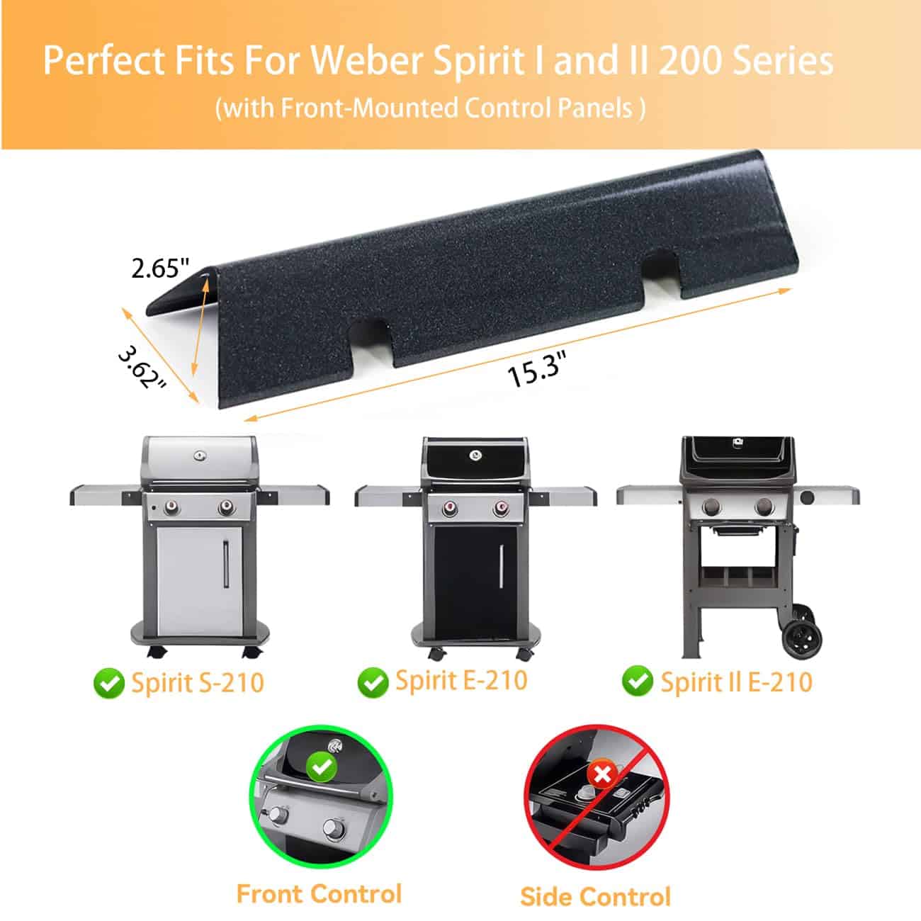 2. También Compatible – Compatible con la serie Weber Spirit 200 de los modelos 2013 E-210 46110001 E-220 46310001 S-210 46100001 S-210 47100001 .Compatible con el modelo 2014 de la serie Weber Spirit 200 E-210 46113101 46110001 46010074 46010674 46510001 4710001. Ideal para las barras saborizantes weber spirit 2 gs4.