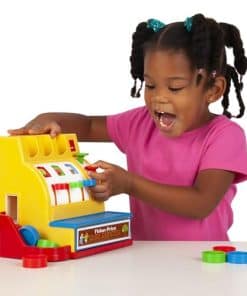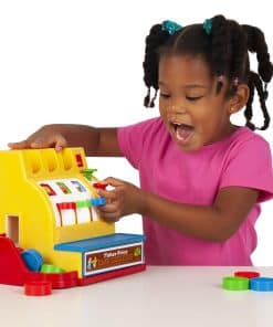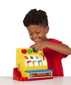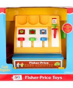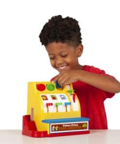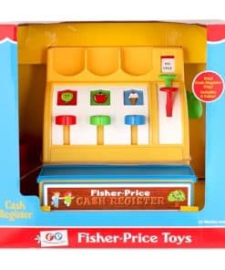 Esta caja registradora está inspirada en la caja registradora de Fisher-Price de 1975 que fue un éxito de juguete clásico instantáneo. ¡A los niños les encantará el juego real de caja registradora! la caja registradora viene con diferentes monedas de colores brillantes que enseñarán a los niños a contar y reconocer colores. ¡Mira cómo las monedas bajan por la rampa, gira la manivela para escuchar sonar la campana y mira cómo se abre el cajón! ¡La caja registradora de Fisher Price creará horas de juego para una nueva generación!
