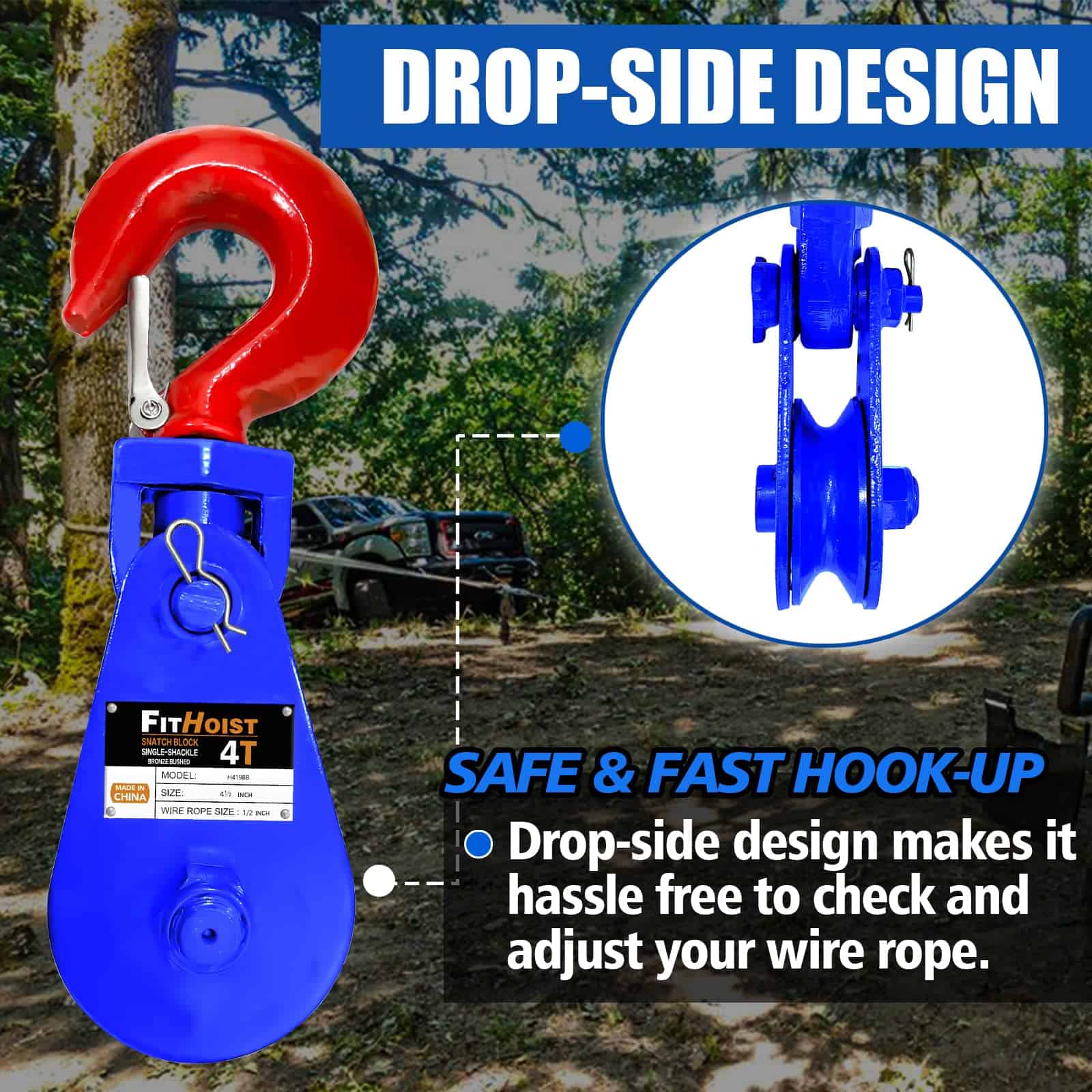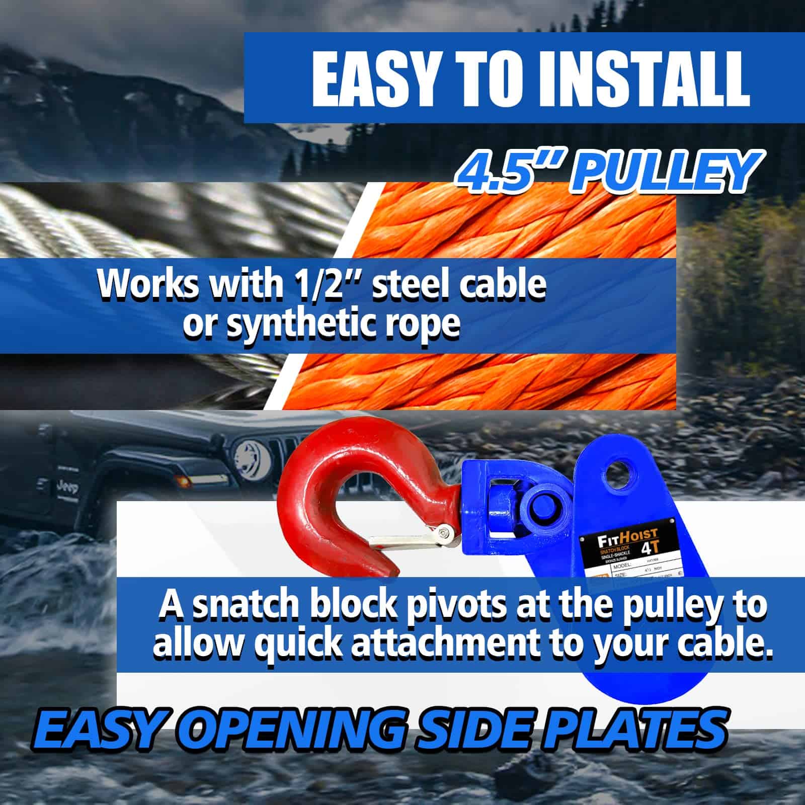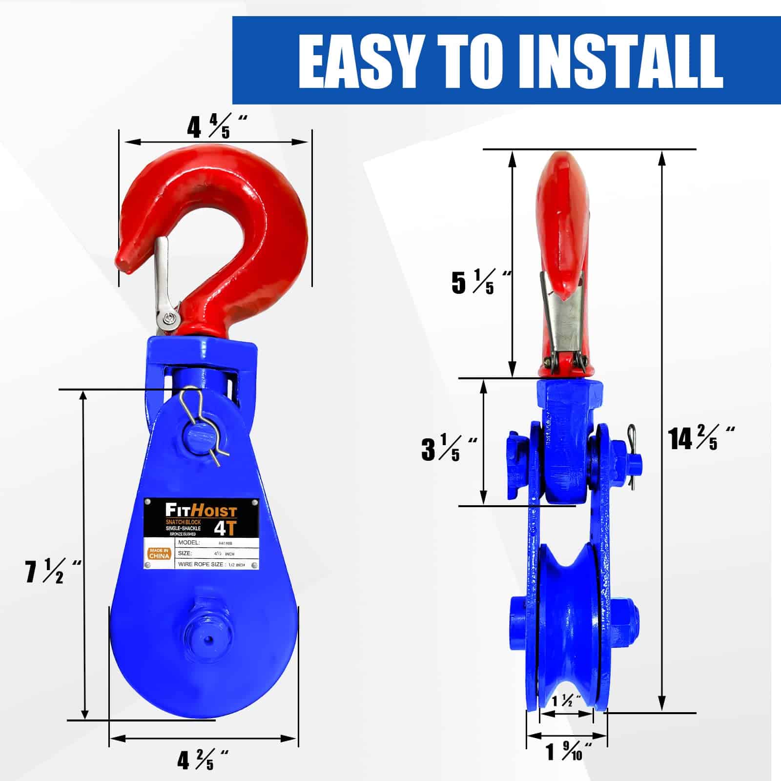FITHOIST 4Tons(8800lbs) Polea con Gancho | Polea de 4 1/2″
