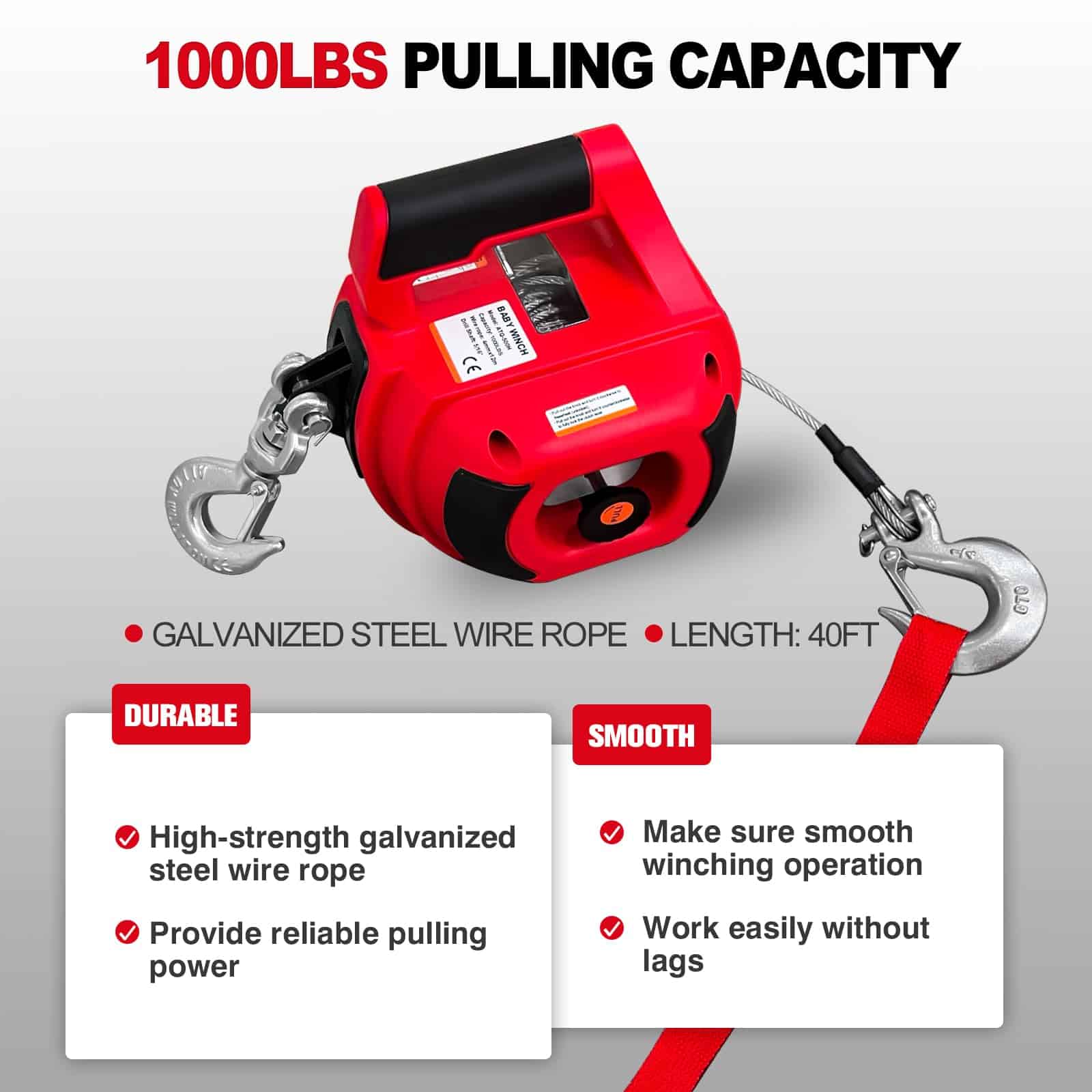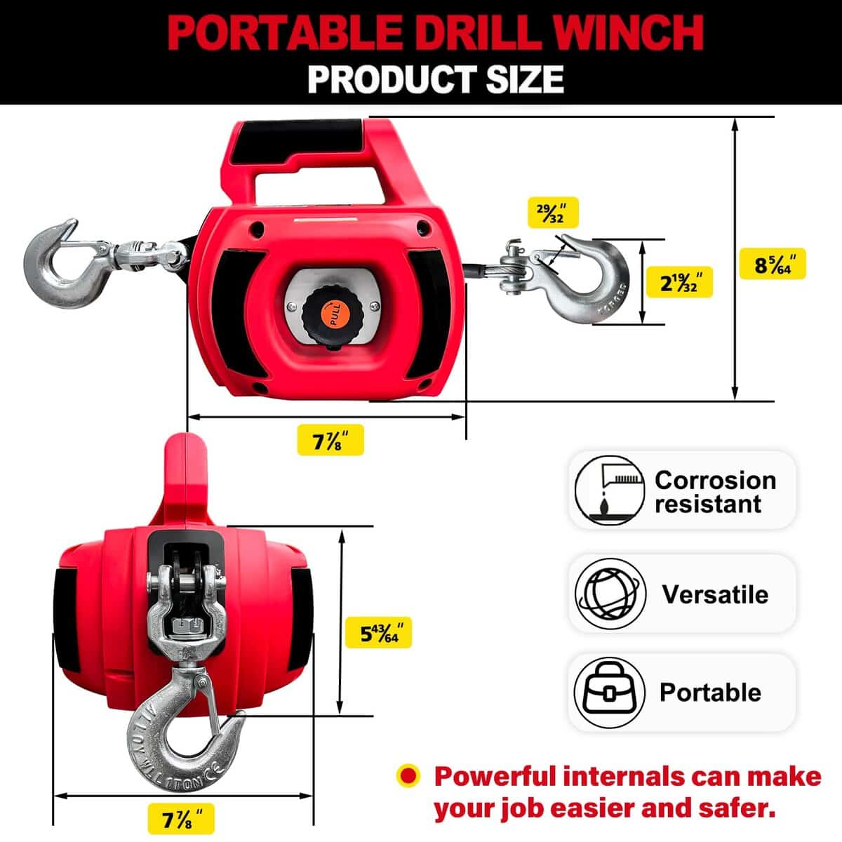 El FITHOIST Portable Drill Winch es una herramienta versátil y potente que se utiliza para levantar, arrastrar y manipular una variedad de cargas. Con una capacidad máxima de tracción de 1000 libras y un cable de acero inoxidable de 40 pies, este winch de taladro proporciona la potencia necesaria para realizar operaciones de winch suaves y eficientes.