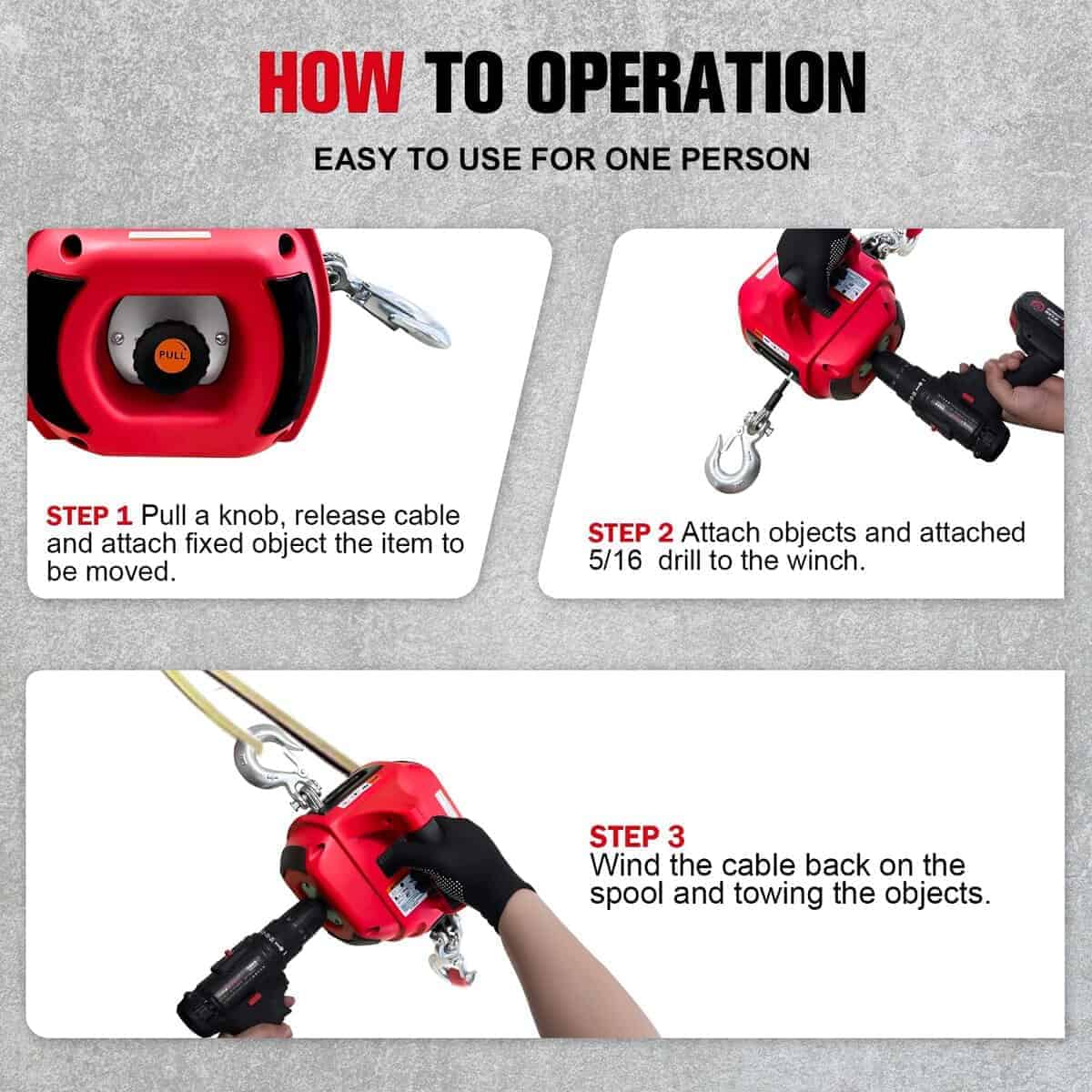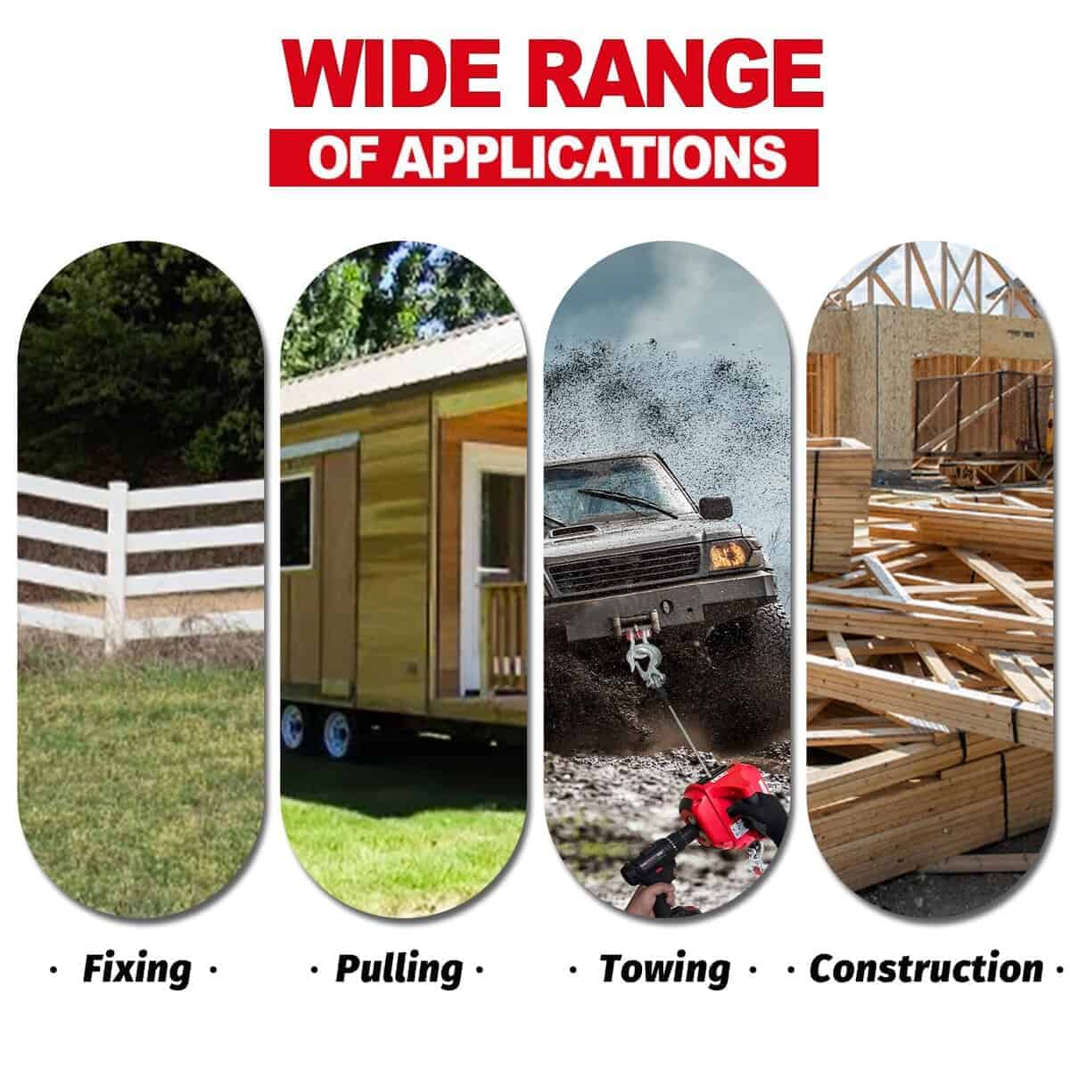 Con una amplia aplicación que incluye remolque, manipulación de troncos, estiramiento de barandas y manipulación de motos de nieve, el FITHOIST Portable Drill Winch es una herramienta confiable y efectiva para diversas situaciones. Si tiene alguna pregunta sobre el producto, nuestro equipo de posventa está disponible para brindarle asistencia y soporte.
