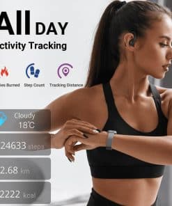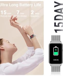 5. Funciones inteligentes: Este rastreador de fitness es un excelente asistente de vida, ofreciendo una variedad de características inteligentes como pronósticos meteorológicos, entrenamiento de respiración, reproductor de música, recordatorios del ciclo femenino, linterna, despertador, control de la cámara, buscar teléfono, temporizador, cronómetro, recordatorios de beber, alertas de sedentarismo, caras de reloj personalizables, y más.