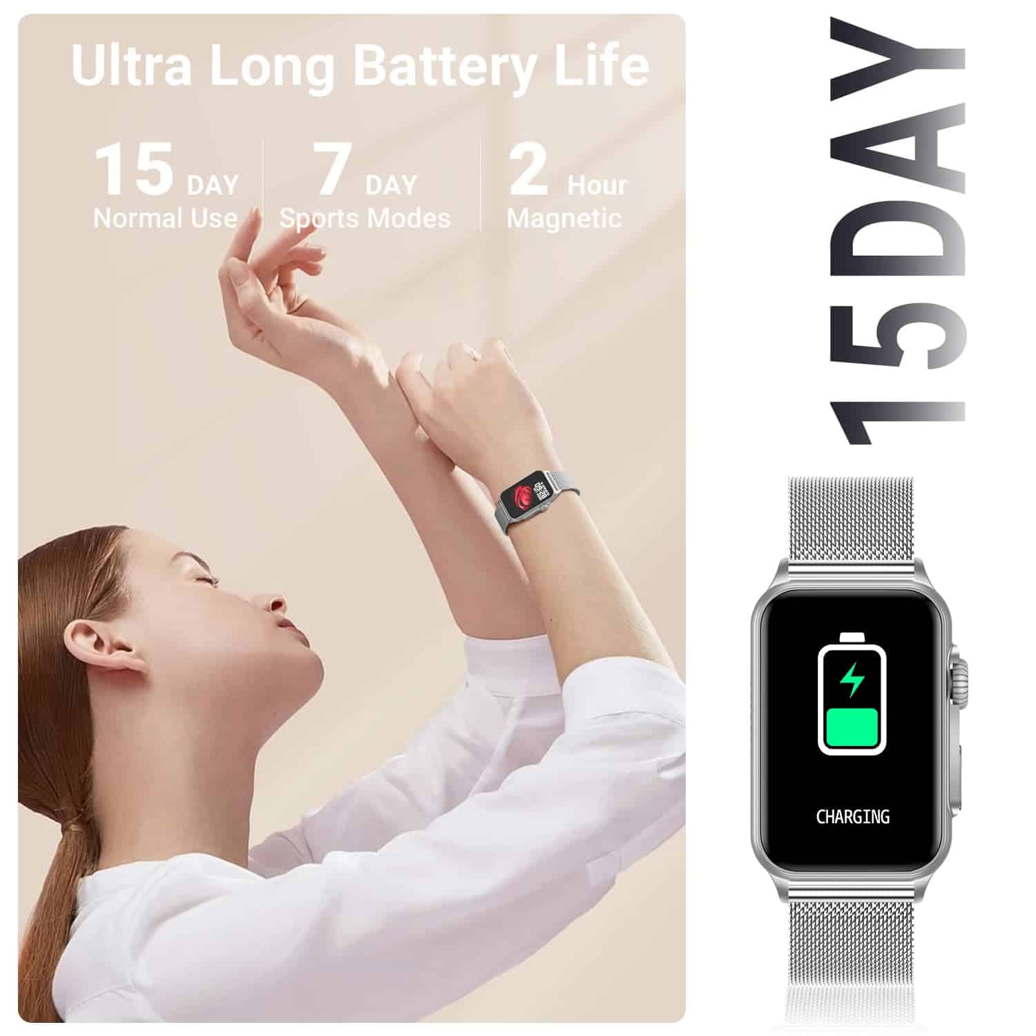 6. Batería de larga duración: Disfruta de hasta 5-7 días de vida de la batería (varía según el uso) y solo 2 horas de tiempo de carga. FITVII Nexa smart watch es compatible con teléfonos inteligentes Android 5.1 / iOS 10.0 o superior con Bluetooth 5.0. (No compatible con PC, iPad o Tablet)