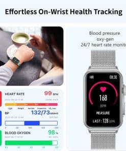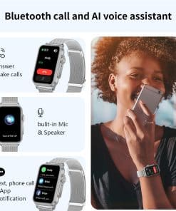 1. Smart Bluetooth Call: Experimenta la conveniencia que ofrece FITVII Nexa fitness tracker. Su avanzada tecnología Bluetooth te permite hacer y responder llamadas directamente desde tu muñeca. Mantente conectado con acceso a registros de llamadas y contactos, y recibe alertas de llamadas, mensajes y notificaciones estés donde estés. También puedes utilizar el reloj para llamar a tu asistente de voz del teléfono para operaciones rápidas.