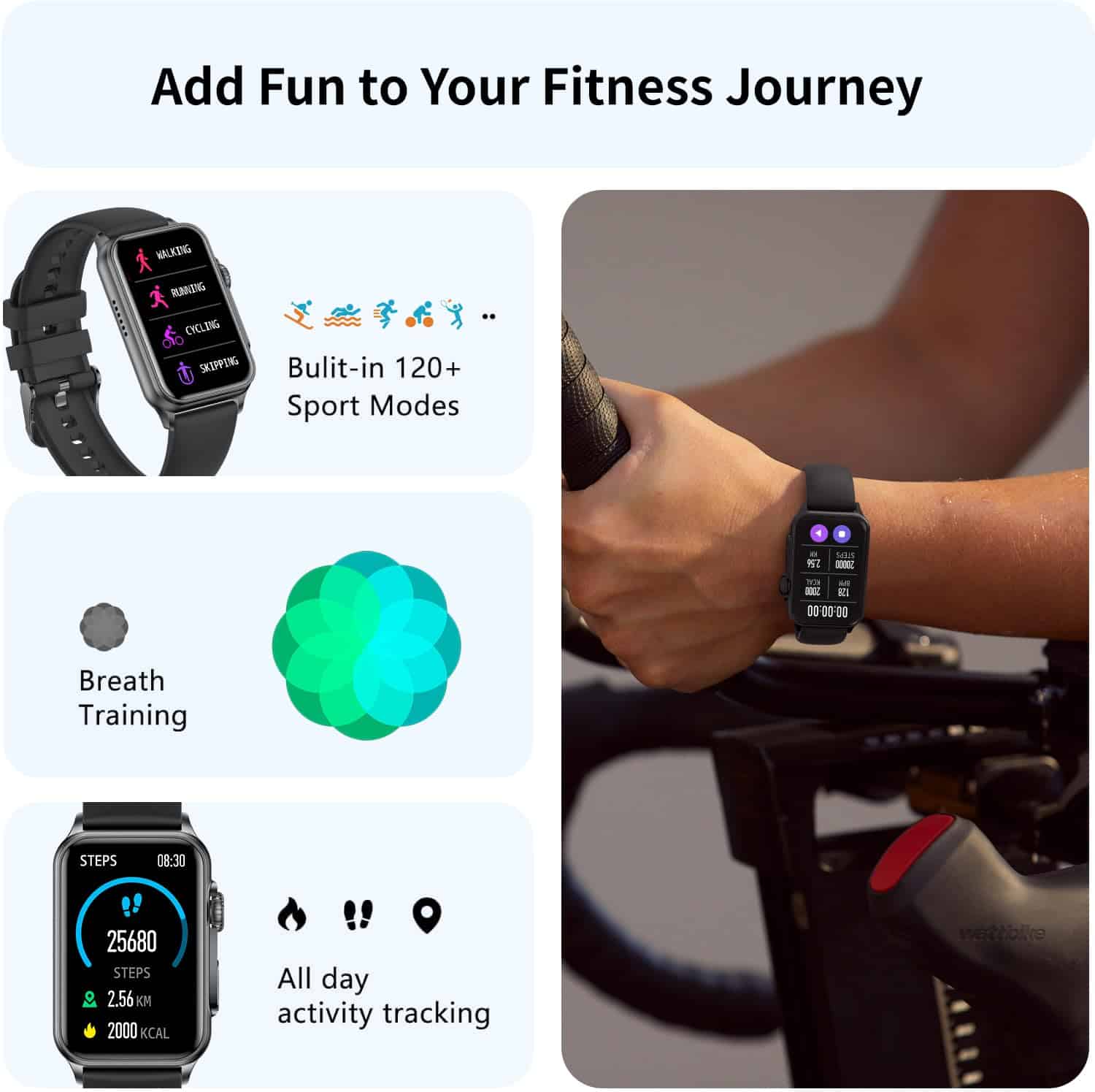 3. Tu Propio Plan de Ejercicio: Elige entre más de 120 modos de deporte integrados diseñados para adaptarse a tus rutinas de ejercicio diarias a cualquier intensidad. Realiza un seguimiento de tus pasos, calorías quemadas, ritmo cardíaco y distancia recorrida. Personaliza tu régimen de fitness agregando tus deportes favoritos al reloj. El reloj cuenta con una clasificación resistente al agua IP67, asegurando que tus entrenamientos no tengan miedo a cualquier clima.
