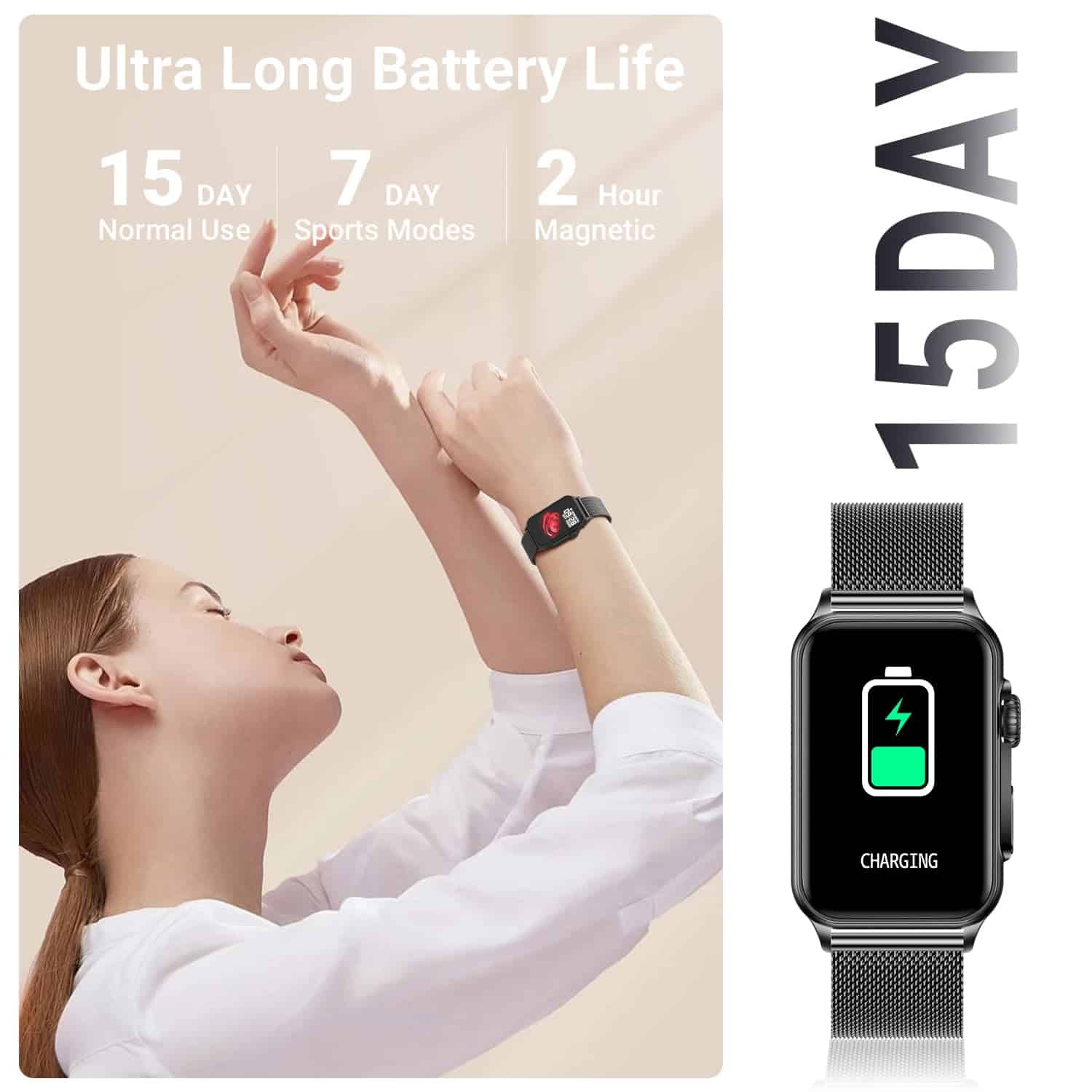 6. Batería de Larga Duración: Disfruta de hasta 5-7 días de vida útil de la batería (varía según el uso) y solo 2 horas de tiempo de carga. El smartwatch FITVII Nexa es compatible con teléfonos inteligentes Android 5.1 / iOS 10.0 o superiores con Bluetooth 5.0. (No compatible con PC, iPad o Tablet)