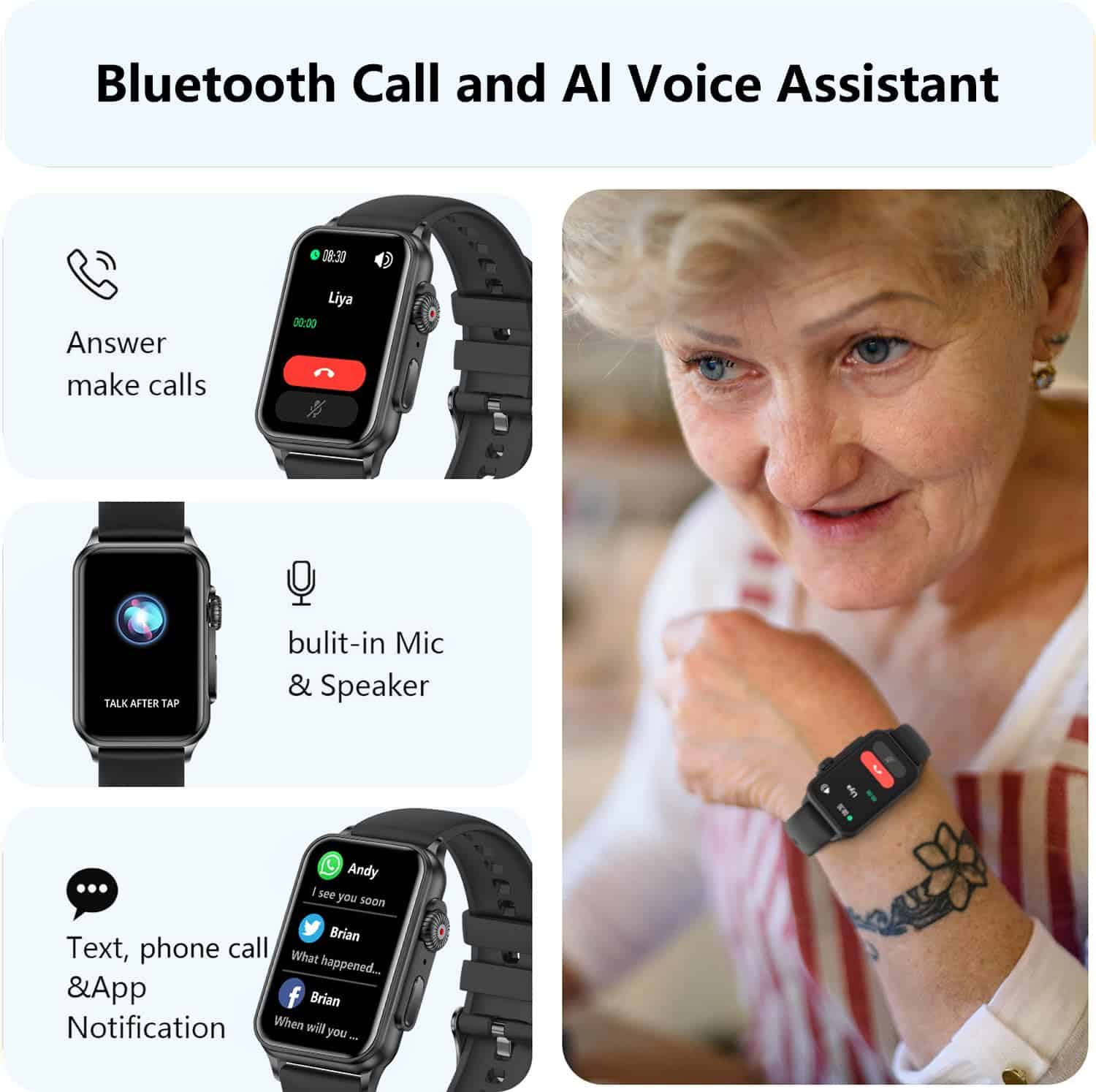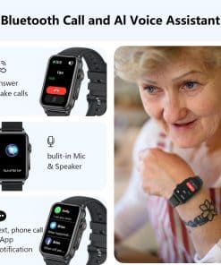 1. Smart Bluetooth Call: Experimenta la conveniencia que te brinda el rastreador de actividad física FITVII Nexa. Su avanzada tecnología Bluetooth te permite hacer y recibir llamadas directamente desde tu muñeca. Mantente conectado con acceso a registros de llamadas y contactos, y recibe alertas de llamadas, mensajes y notificaciones estés donde estés. También puedes utilizar el reloj para llamar al asistente de voz de tu teléfono para operaciones rápidas de comando.