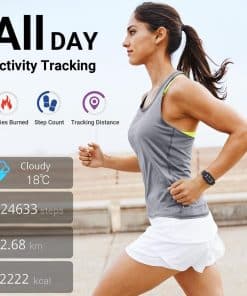 5. Funciones Inteligentes: Este rastreador de actividad física es un excelente asistente de vida, que ofrece una variedad de funciones inteligentes que incluyen pronósticos meteorológicos, entrenamiento de respiración, reproductor de música, recordatorios del ciclo femenino, linterna, despertador, control de cámara, buscar teléfono, temporizador, cronómetro, recordatorios para beber, alertas de sedentarismo, caras de reloj personalizables y más.