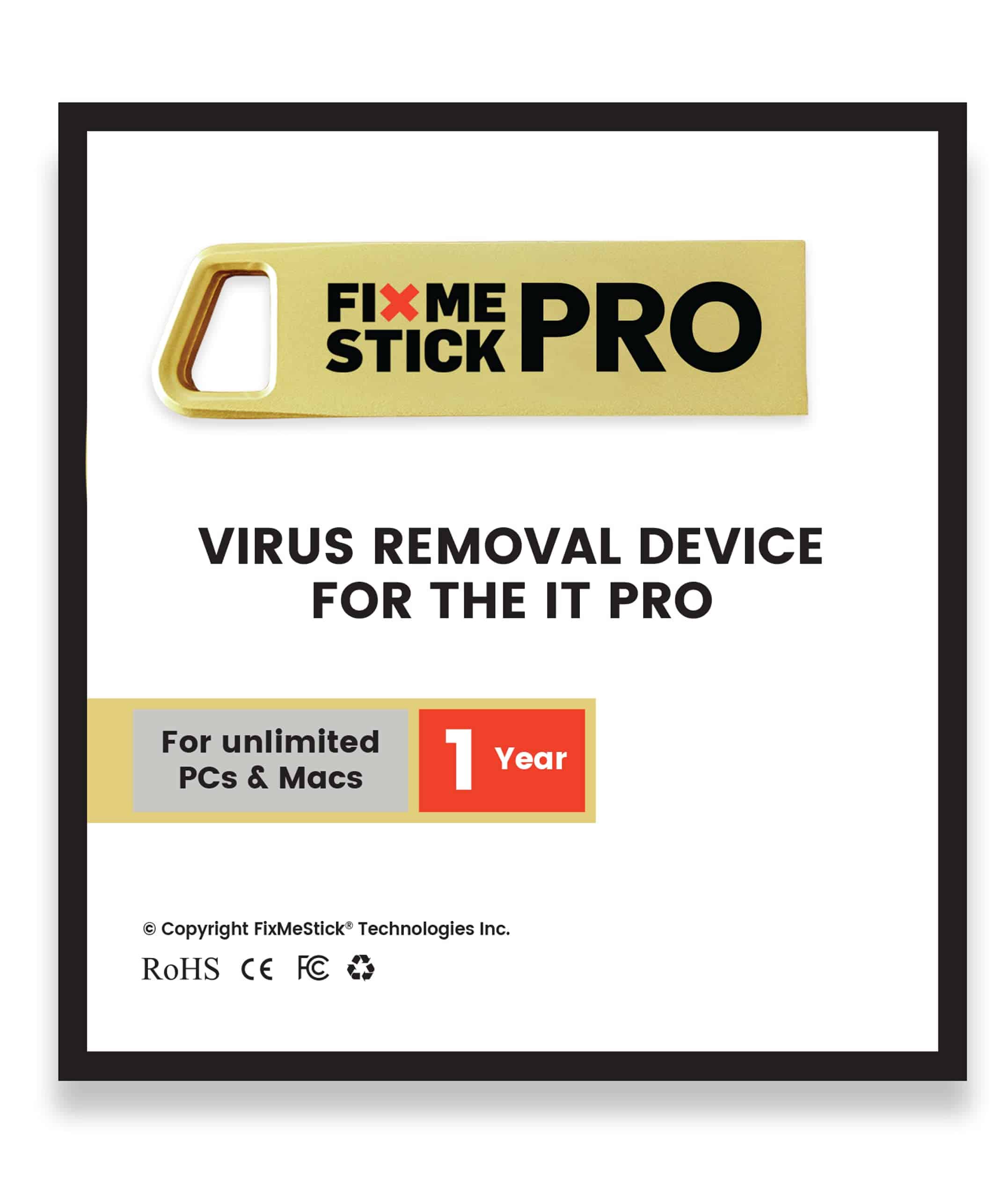 EXCLUSIVO PARA EMPRESAS: La eliminación de virus FixMeStick PRO ofrece una solución especializada para las necesidades de seguridad informática de su empresa. Con la capacidad de eliminar infecciones difíciles, rootkits y bootkits en una amplia gama de computadoras, tanto Windows como Apple, el FixMeStick PRO le ofrece tranquilidad en términos de ciberseguridad.
