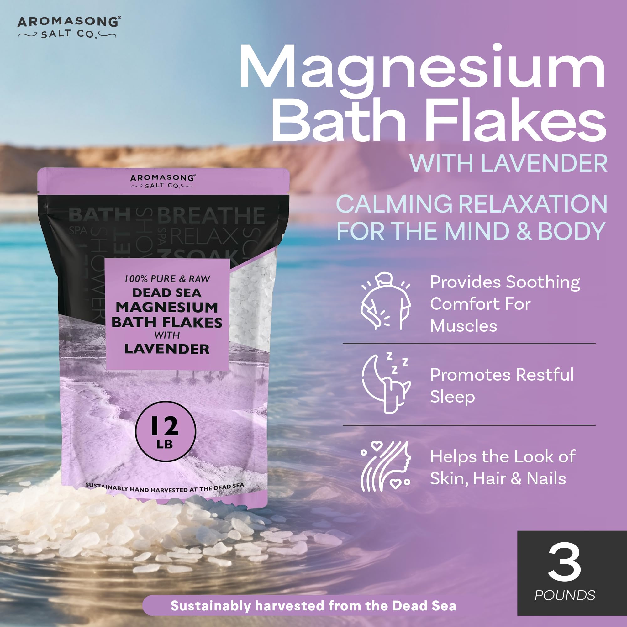 Aromasong Flakes de Baño de Magnesio RAW con Lavanda Natural al 100% son la solución ideal para relajar tanto tu mente como tu cuerpo. Hechos con flakes de magnesio puro del Mar Muerto, estos cristales de cloruro de magnesio son perfectos para proporcionar los beneficios terapéuticos del magnesio. Sumergirse en un baño con estos flakes ayudará a calmar los músculos fatigados, mejorando así tu bienestar general. Además, los studies demuestran que los flakes de magnesio pueden tener un impacto positivo en la apariencia de la piel, al estabilizar los desequilibrios hormonales y mejorar los procesos celulares. Disfruta de la sensación de calma y alivio del estrés que proporcionan los flakes de sal de magnesio, y si prefieres evitar las píldoras o cápsulas, ¡nada mejor que un baño de inmersión para aumentar los niveles de magnesio en tu cuerpo!