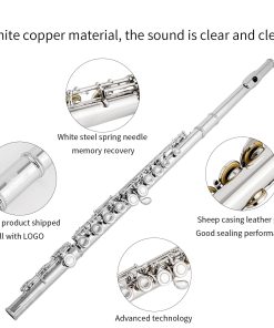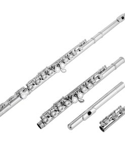 Flauta C cerrada Aisiweier C con grasa para juntas, varilla de limpieza, estuche de transporte, soporte, guantes y varilla de afinación, 16 llaves Flauta para principiantes de flauta de niños, Niquel