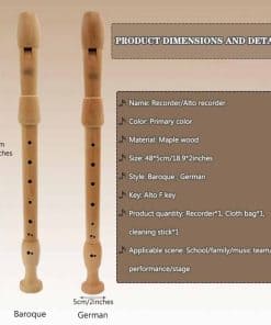 1. Flauta dulce de madera: Flauta de arce de alta calidad con una textura magnífica y hermosa. La madera ha sido almacenada por más de cinco años, secada de forma natural y tiene una larga vida útil; puramente hecha a mano, después de docenas de procesos y múltiples pruebas de tono para garantizar una calidad de sonido precisa. En comparación con la flauta de plástico, el sonido de la flauta de madera será más melodioso, rico, abierto y potente, y el efecto de interpretación será mejor.