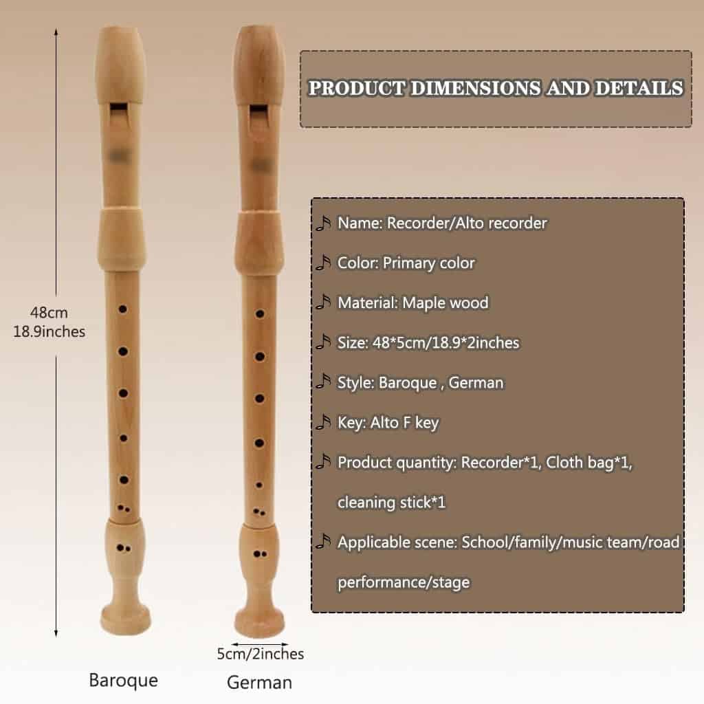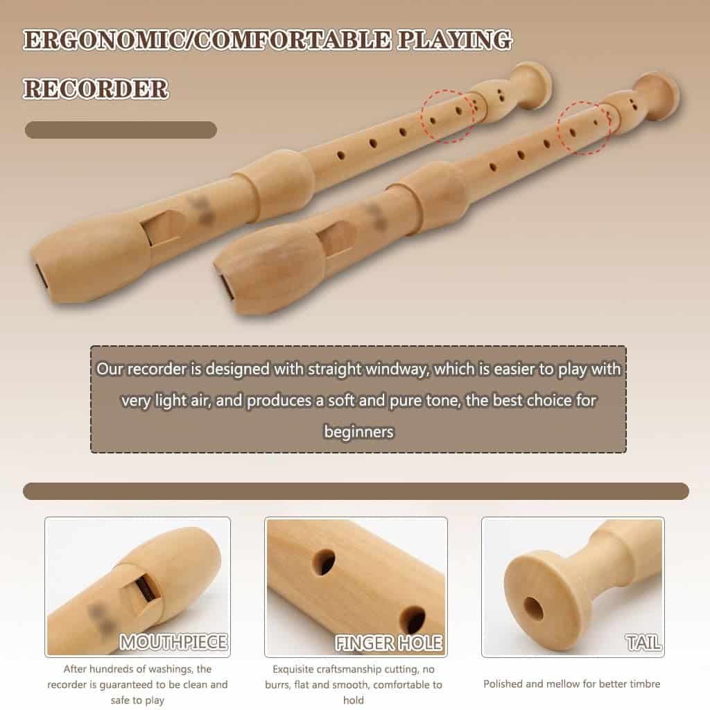 3. Flauta dulce ergonómica: Nuestra flauta dulce adopta un diseño de camino recto de aire, que es más fácil de tocar con muy poco aire y produce un tono suave y puro, la mejor opción para principiantes; la boquilla ha sido lavada cientos de veces para garantizar que la flauta vertical esté limpia y segura para tocar; los agujeros de los dedos están cortados con una artesanía exquisita, sin rebabas, suaves y lisos, y cómodos de sostener; la cola está pulida y redondeada, lo que es conveniente para un mejor sonido.