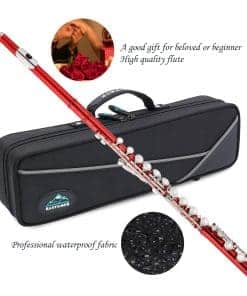 Diseño estándar con 16 llaves cerradas, G desplazada con tecla E dividida, pie desmontable. La tecla G desplazada te permite alcanzar la tecla G de forma natural con facilidad. La tecla E dividida divide la tecla G en dos teclas separadas que se mueven de forma independiente pero conectadas. Cuerpo de CUPRONICKEL real, níquel plateado, almohadillas de alta calidad y paneles de eco metálicos que proporcionan una buena resonancia y un sonido más explosivo. Diseño de orificio de embocadura biselado actualizado, es fácil de soplar o hacer un sonido claro, todas las formas de teclas y la colocación han sido diseñadas ergonómicamente para una actuación cómoda y natural. NOTA: ¡Si tienes algún problema con nuestro producto, contáctanos primero! Te daremos una solución satisfactoria. La flauta serie mejora recientemente con recubrimiento de níquel de grado premium puede ser un buen regalo para principiantes, niños, estudiantes, y más.
