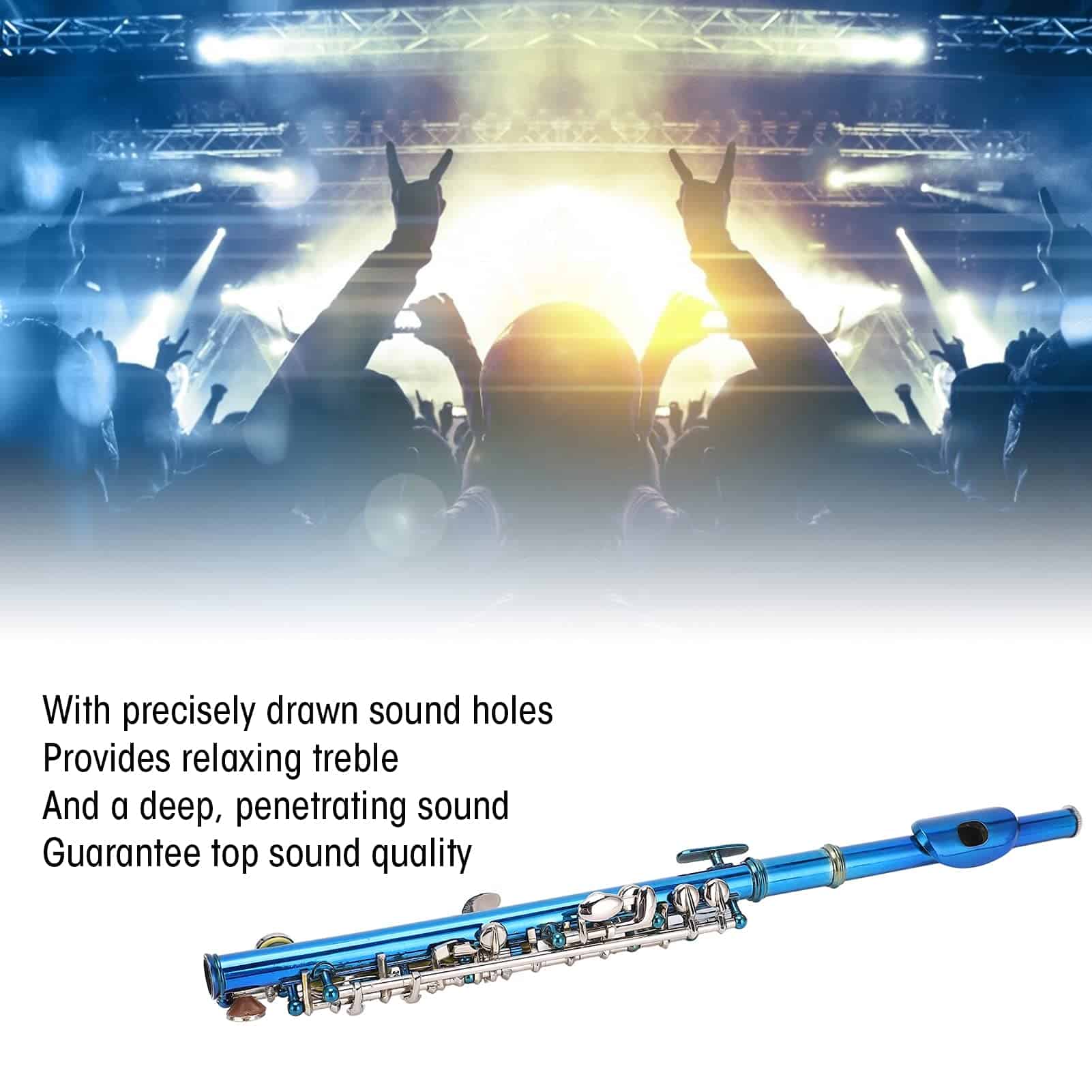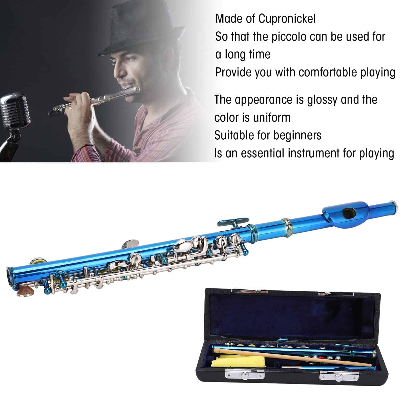 1. BUEN MATERIAL DE CUPRONÍQUEL: Este flautín está hecho de cuproníquel y la superficie está bañada en azul. Práctico flautín piccolo que no se rayará fácilmente, tiene buena resistencia al desgaste y resistencia a los golpes para un uso a largo plazo.