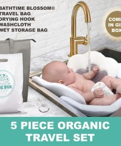 CANSADO DE BEBÉS FRÃOS Y LLORANDO DURANTE EL BAÑO La Flor de Baño para Bebés está floreciendo en fregaderos y creando maravillosos recuerdos de baño! Diseñada para seguridad y comodidad, nuestro inserto de flor de baño para bebé es la mejor manera de calentar un fregadero de cocina, bañera de plástico o bañera. ¡Lleve esos momentos especiales en la carretera – con nuestro kit de viaje! QUÉ RECIBES Una almohadilla de baño orgánica plegable para bebé, perfecta para la piel sensible de un recién nacido. Una bolsa de transporte PLA biodegradable para guardar y un gancho de succión para colgar tu almohadilla de baño para secarla. ¡Un paño de lavado de bambú orgánico GRATIS para lavar la piel delicada de tu bebé! FÁCIL DE USAR, LIMPIAR Y GUARDAR Inserte la almohadilla de flor en su fregadero, llene con agua tibia y bañe. Una vez terminado, escurra. Lávelo y séquelo en ciclo delicado o cuélguelo para secar en la ducha. Se seca rápidamente para que no huela a moho. HACE LOS VIAJES MÁS FÁCILES Brinda una experiencia de baño familiar y hace que viajar sea más cómodo. A tu bebé le encantará que el fregadero de la abuela o la bañera del hotel se haya vuelto familiar y seguro, igual que en casa. Ten la tranquilidad de saber que tu bebé se está bañando en un ambiente limpio e higiénico. Nuestro asiento de baño para bebés facilita los viajes: simplemente dóblelo, guárdelo y vaya. UN PASO POR ENCIMA DEL RESTO La capa superior de nuestra almohadilla de baño para bebé está hecha de bambú/orgánico al 100%. Esta cubierta suave y totalmente natural es excelente para la piel sensible. Nuestro anillo de soporte para recién nacidos de Patente Pendiente ayuda a abrazar a un bebé, brindando más soporte hasta que se fortalezcan. El uso recomendado es de seis meses, mientras que nuestro asiento de baño para bebés se puede usar durante dos años o más. Úselo como un compañero reconfortante al momento de hacer la transición a la bañera grande. Nuestro diseño con ventosa ofrece más seguridad, durante el tiempo de juego travieso de su niño pequeño. GARANTÃA DE SATISFACCIÓN DEL 100% Cubierto por una garantía de devolución de dinero del fabricante de 30 días con una garantía de reemplazo de 1 año. ¡Haz clic en Añadir al carrito AHORA!