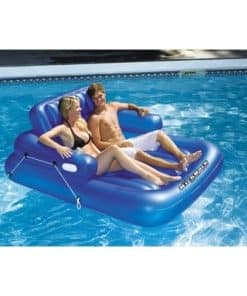 La serie Kickback de Swimline presenta los primeros flotadores inflables reclinables y totalmente ajustables del mundo. El Flotador Doble Ajustable Kickback fue construido con una base extra flotante para mantenerte alto sobre el agua: su diseño sobredimensionado y acanalado ofrece mucho espacio para una comodidad incomparable para dos personas. El flotador es infinitamente ajustable: personaliza la configuración de la cuerda de amarre incluida al ángulo de inclinación de tu elección. Los portavasos dobles integrados y las asas de agarre se aseguran de que te tenemos cubierto en todos los aspectos de la experiencia de relajación.