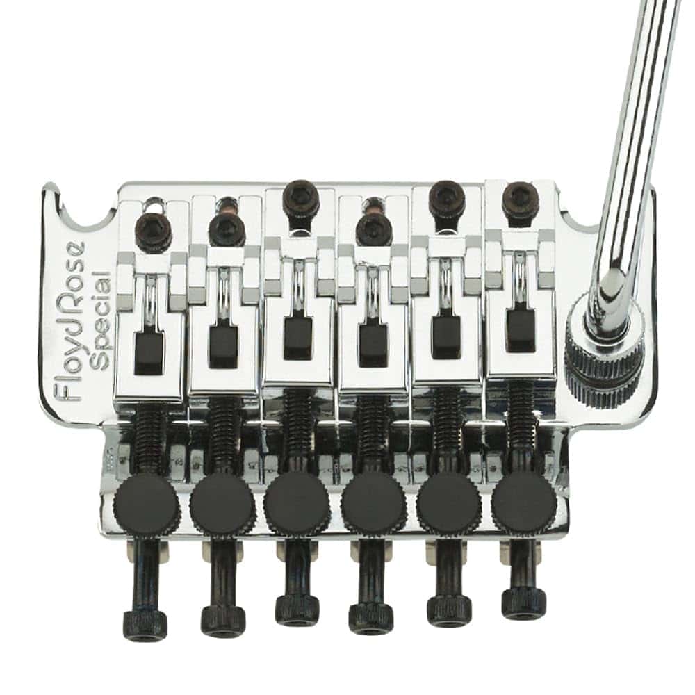 Con la invención del primer sistema de vibrato con bloqueo del mundo en 1977, Floyd D. Rose revolucionó por completo la guitarra eléctrica y con ella a toda una nueva generación de músicos. 40 años después, Floyd Rose ofrece una amplia variedad de sistemas de vibrato de repuesto, mejoras y repuestos, y son utilizados y confiados por algunos de los guitarristas más influyentes y famosos del planeta. El Floyd Rose Special es nuestra versión auténtica de un sistema de trémolo de Floyd Rose con licencia fabricado en Corea exclusivamente para Floyd Rose. El Floyd Rose Special mantiene el diseño y las características de un Floyd Rose Original, mientras utiliza selletas de aleación de zinc en lugar de acero y un bloque de sustain de aleación de zinc en lugar de latón. Las especificaciones de diseño y los materiales de alta calidad del puente Floyd Rose de la serie Special resistirán las exigencias de los intérpretes de hoy en día. Disponible en una variedad de tamaños de cejuela para adaptarse prácticamente a cualquier guitarra eléctrica, el kit de trémolo contiene el puente, la cejuela de bloqueo, muelles y garra, espárragos de montaje y todo el hardware necesario para la instalación.