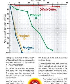 Los productos FLUID FILM ofrecen una potente protección contra la corrosión para todos los metales y una lubricación superior para todas las piezas móviles. Es un líquido no tóxico, de larga duración, tixotrópico que se ha utilizado durante más de cincuenta años en el entorno altamente corrosivo del mar de barcos y plataformas petrolíferas en alta mar. Más recientemente, han sido introducidos y utilizados con éxito en las industrias aeroespacial, aeronáutica y de automóviles, así como para el mantenimiento del hogar. Las instalaciones donde se utilizan incluyen las siguientes: instalaciones gubernamentales, empresas de pesca comerciales, compañías de gas, agricultura, plantas de sal, plantas municipales, plantas eléctricas, plantas manufactureras y plantas de pasta y papel. FLUID FILM está formulado a partir de cera de lana procesada especialmente, aceites de petróleo altamente refinados y agentes seleccionados para proporcionar control de corrosión, penetración, mojado en metales y desplazamiento de agua. El producto de larga duración no contiene disolventes, no se secará y penetrará hasta la base de todos los metales, proporcionando protección contra la corrosión tanto en atmósferas naturales como industriales. Partes fuertemente corroídas y/o congeladas como tuercas, pernos, ejes, etc. que normalmente se dañarían durante el mantenimiento, pueden ser recuperadas aplicando FLUID FILM.