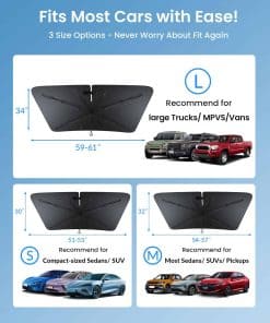 Fluxelle presenta su Protector Solar para Parabrisas de Coche con la última actualización de 2025, diseñada para bloquear el 99.9% de los rayos UV y ofrecer un 99% de compatibilidad con vehículos. Este protector solar retráctil para parabrisas de coche cuenta con una punta flexible de doble resorte que se ajusta al ángulo del parabrisas, garantizando un ajuste seguro y eliminando los problemas de compatibilidad que tienen otros protectores solares. Con 3 tamaños inteligentes para elegir, solo necesitas medir tu parabrisas antes de comprar para obtener un ajuste perfecto en solo 2 segundos.