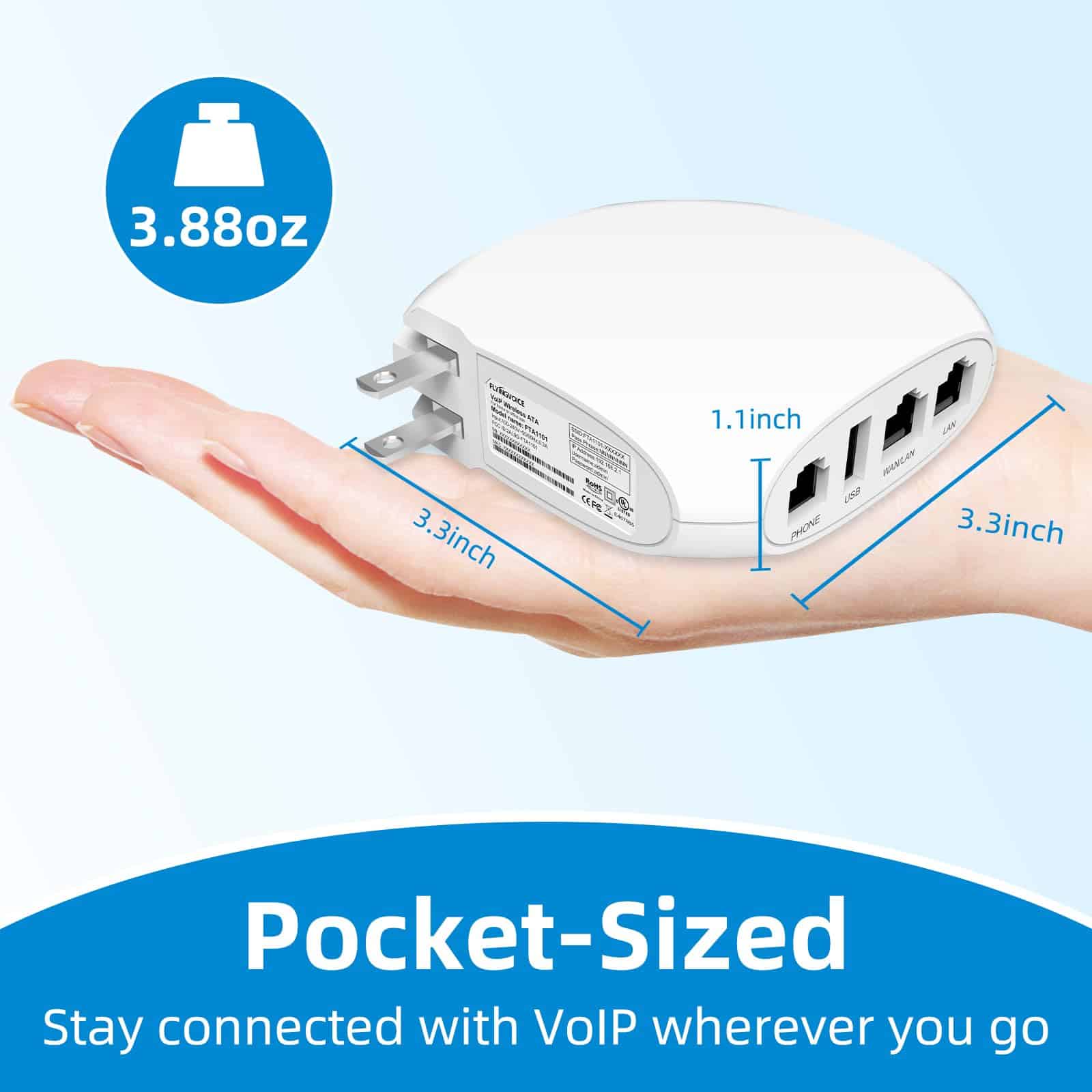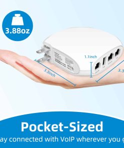 1. Adaptador VoIP de bolsillo y portátil para teléfono analógico: El adaptador de teléfono analógico FLYINGVOICE FTA1101 cabe fácilmente en tu bolsillo, lo que lo convierte en una solución portátil para viajes de negocios, trabajo remoto o configuraciones en el hogar. Mantente conectado con VoIP donde quiera que vayas.