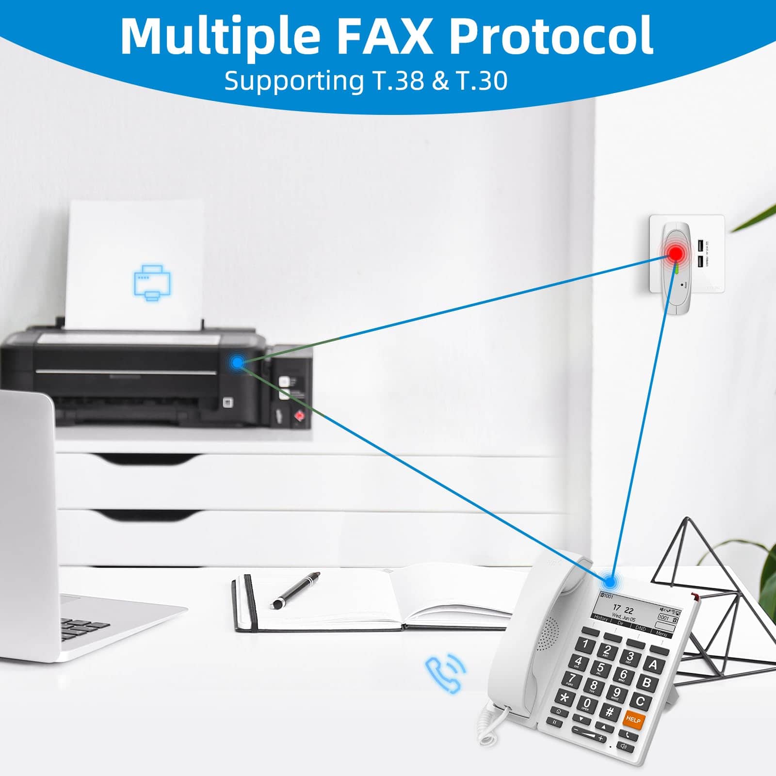 4. Modo AP para una conectividad sin problemas: Con el Modo de Punto de Acceso integrado, este adaptador VoIP mejora tu red, asegurando una conexión fiable en entornos de pequeñas empresas o viajes de negocios. Este modo hace que este ATA funcione como un enrutador Wi-Fi, compartiendo Internet inalámbrico a otros dispositivos. Como portátil, teléfono inteligente o teléfono VoIP con función Wi-Fi. Amplía fácilmente tu red con este versátil adaptador de teléfono analógico.