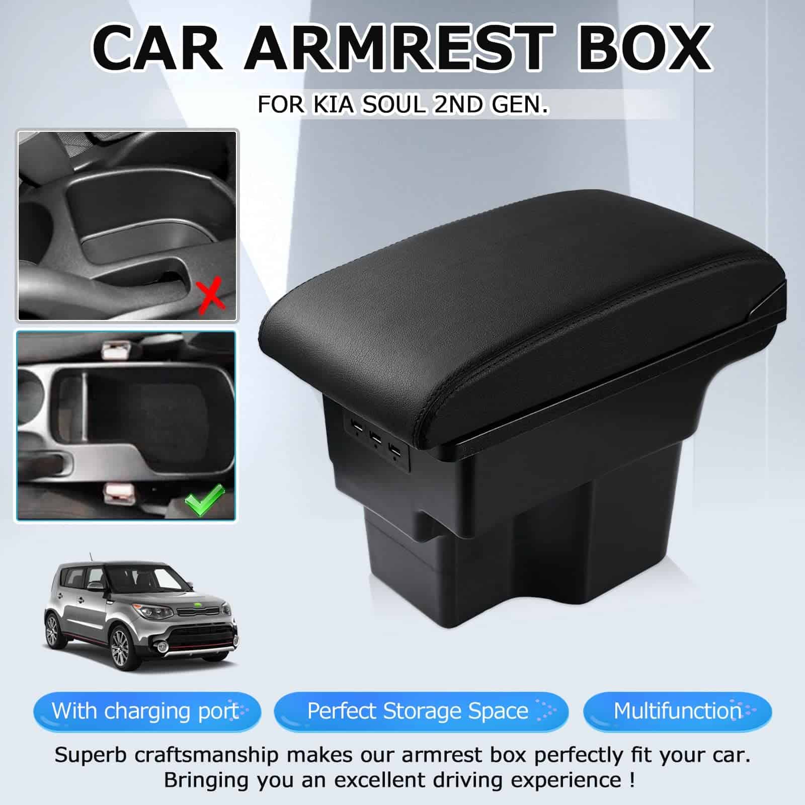 1. Ajuste Personalizado Según la estructura original del auto, se ajusta a la perfección a tu Kia Soul 2018. La excelente artesanía hace que nuestra caja de apoyabrazos se adapte perfectamente a tu auto.