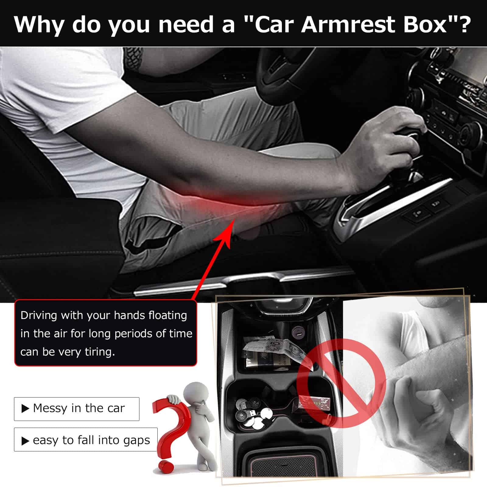 5. Fácil de Instalar Simplemente coloca la caja de apoyabrazos en la posición detrás del freno de mano a presión. No se necesitan herramientas. Fácil de abrir y cerrar. Sin ruido alguno.