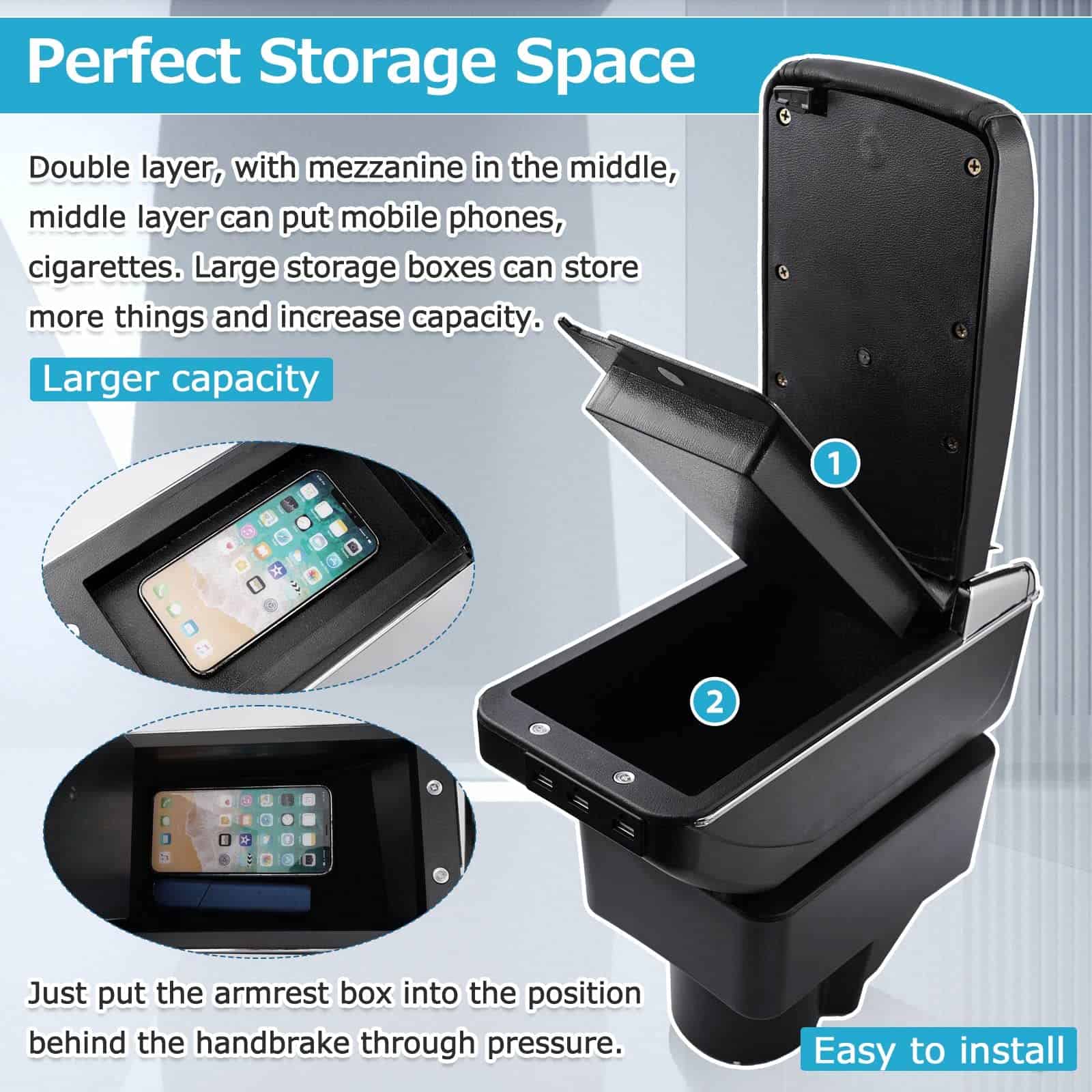 Custom Fit for Car Armrest Box es perfecto para personalizar y mejorar el almacenamiento y funcionalidad de la consola central de tu Ford Fiesta MK7. Fabricado con materiales de alta calidad como ABS y cuero PU, este organizador de reposabrazos no solo es duradero y resistente al desgaste, sino que también ofrece una experiencia de conducción superior gracias a sus características ergonómicas. Con 7 puertos de carga USB, podrás cargar múltiples dispositivos simultáneamente mientras conduces. La doble capa de almacenamiento te permitirá mantener tus objetos personales seguros y organizados. Fácil de instalar sin necesidad de herramientas, este accesorio de automóvil es una opción conveniente y práctica para cualquier propietario de Ford Fiesta MK7. Aumenta tu comodidad y disfruta de cada viaje con este práctico organizador de reposabrazos.