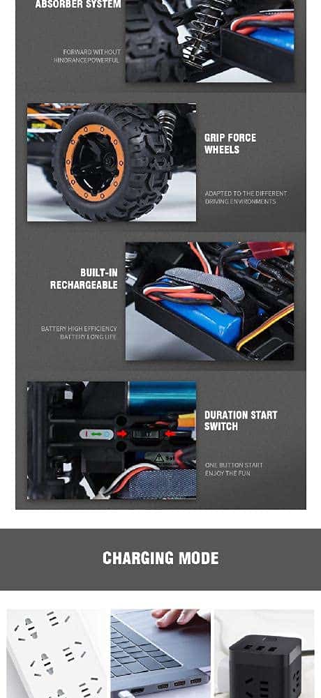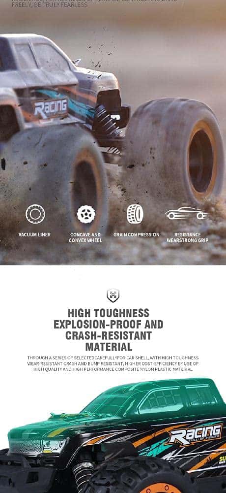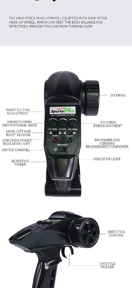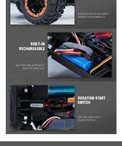 Especificación: Frecuencia: 2.4G Escala: 1/16 Velocidad Máxima: 45 km/h Servo: Servo de dirección de 17G 3 cables Color: Como se muestra en la imagen Tamaño de Coche: 270x215x130mm Material: Hardware y plástico Batería para el coche: Batería de iones de litio de 7.4V 1300mAh (Incluida) Distancia entre ejes: 175mm ESC: 7.4V 25A (ESC/Receptor integrado) Tiempo de Uso: 16-20 minutos Motor: Motor sin escobillas de 2435 3900kv Diámetro de la Rueda: 78mm Tiempo de Carga: Aproximadamente 3.5-4 horas Ancho de la Rueda: 41mm Distancia Remota: 100m Batería del Transmisor: 3X 1.5V AA(no incluidas) Relación de Engranajes: 1 Lista de Embalaje: 1 X Coche RC (batería incluida) 1 X Transmisor 1 X Cable de Carga USB 1 X Manual