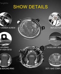 TangMiGe hace posible que cada conductor ilumine su camino con su espectacular línea de focos de niebla que seguramente se convertirán en el estándar de la industria. Ajuste perfecto para BMW 2000-2006 (E46 M3 E39 M5) / Serie 3 (320i 323i 325i 325xi 330i 330xi Sedán con Paquete Deportivo, 325i 325xi Carro con Paquete Deportivo). Aspecto de instalación de fábrica, sin necesidad de modificaciones en el vehículo y fácil de instalar. Resistente a la humedad y el polvo para una mayor durabilidad. Especificaciones: Bombillas halógenas (HB4)9006 de 12V 55W, Carcasa de alta calidad con PBT+ASA+GF20 (igual que el original, mucho mejor que ABS), Lente Clara, Kit de cables (no incluido), Paquete incluye (Un par de focos de niebla, lado del conductor y lado del pasajero). Cumple con las normativas DOT / SAE, reemplaza las piezas originales (OE) R-63177894018, L-63177894017; Número de Parte de Partslink: R-BM2593122, L-BM2592122; Estos focos de niebla no solo mejorarán la apariencia de tu coche, sino que también cumplen con las estrictas normas de cumplimiento DOT y SAE. Focos de niebla duraderos para BMW que aumentan la seguridad al conducir y la visibilidad en la noche, lluvias intensas, nieve o niebla densa. Diseñados para resistir la humedad y el polvo para mantener el interior protegido.