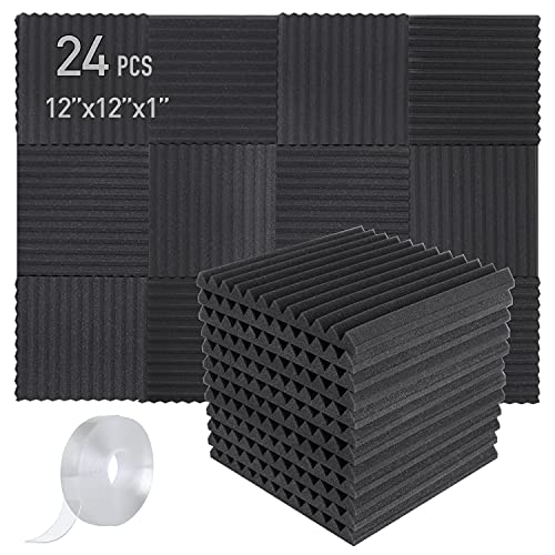 Focusound 24 Pack Paneles de Espuma Acústica 1″ x 12″ x 12″