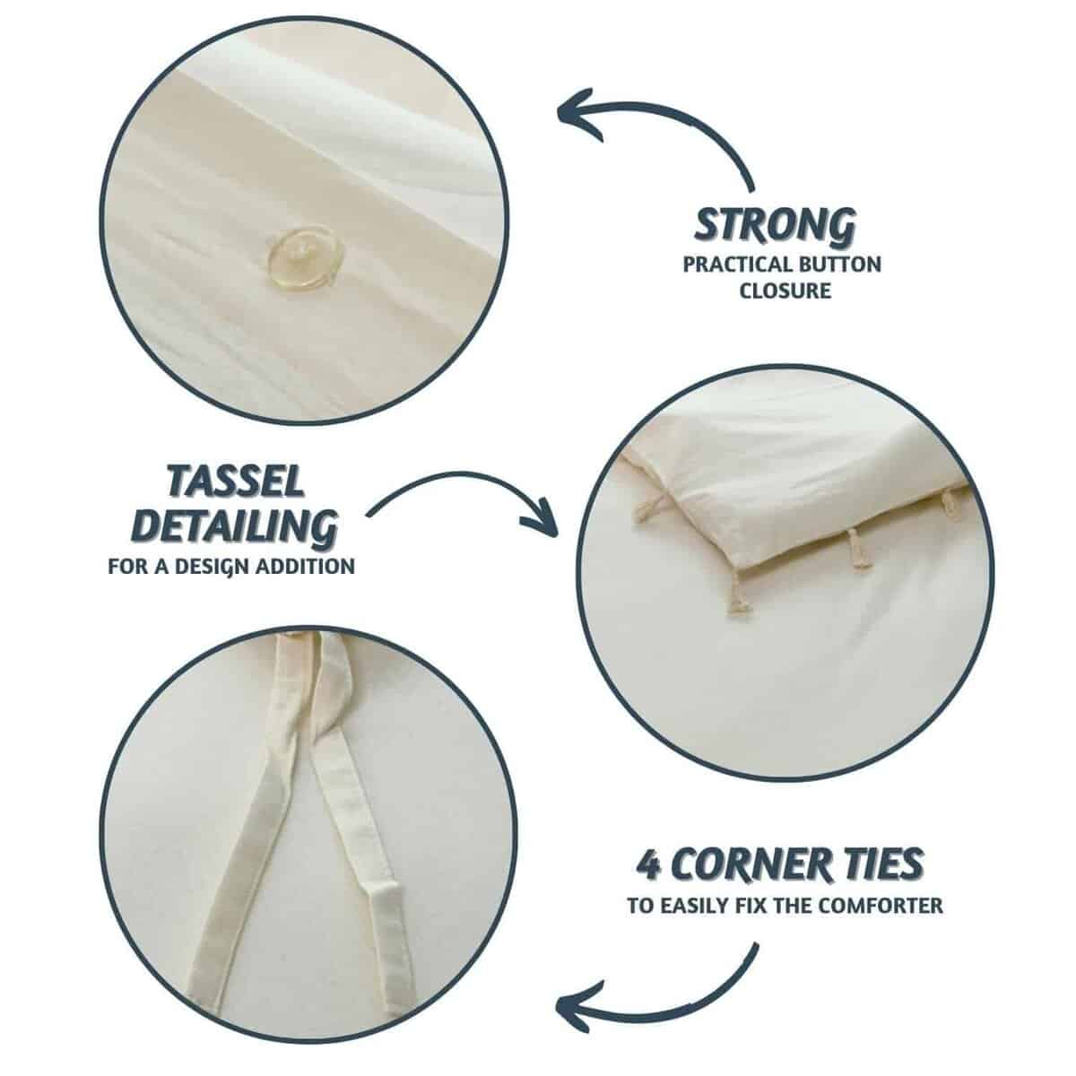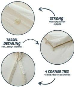 DISFRUTE DE LA SUAVIDAD EXTRA – Disfrute de la suavidad adicional y déle a su decoración de habitación bohemia una sensación acogedora con este juego de funda de edredón king oversize que está diseñado en algodón puro. La ropa de cama de estilo farmhouse king es transpirable y liviana, convirtiéndola en la solución perfecta para un sueño reparador. DISEÑO PREMIUM – Estas fundas de edredón king le darán a su dormitorio de estilo farmhouse una actualización moderna de estilo boho. Los tonos sutiles y neutros de esta funda de edredón king size complementarán fácilmente su entorno interior.