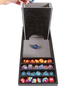 – Superficie de Juego de Terciopelo de Lujo – Amortigua los golpes, acaricia tus dados preciados y ayuda a mantener tus dados correctamente contenidos.