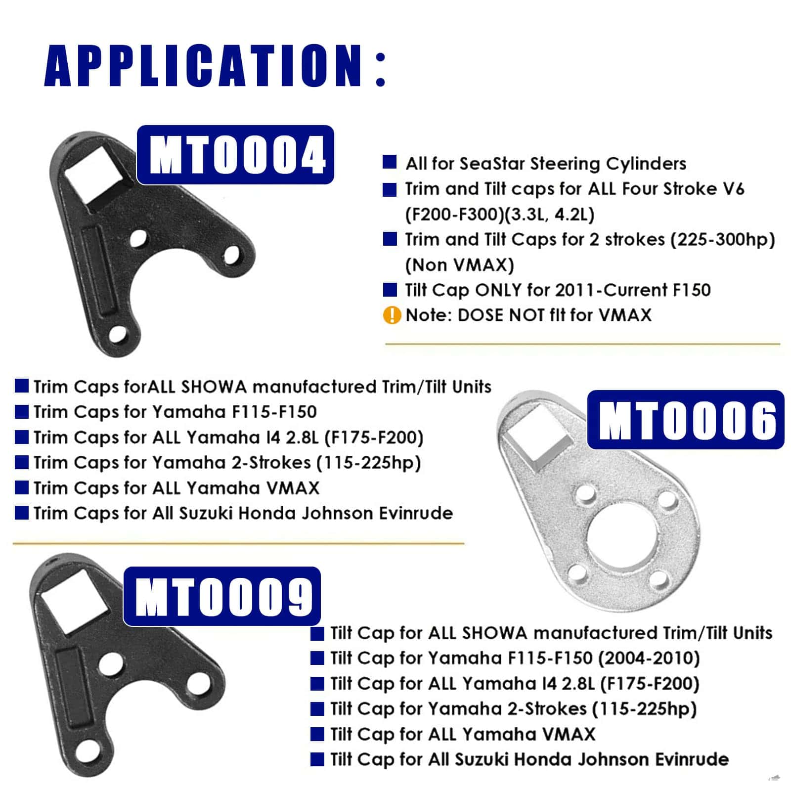 Casquillos de recorte e inclinación para todos los Yamaha V6 de cuatro tiempos (F200-F300)(3.3L, 4.2L);