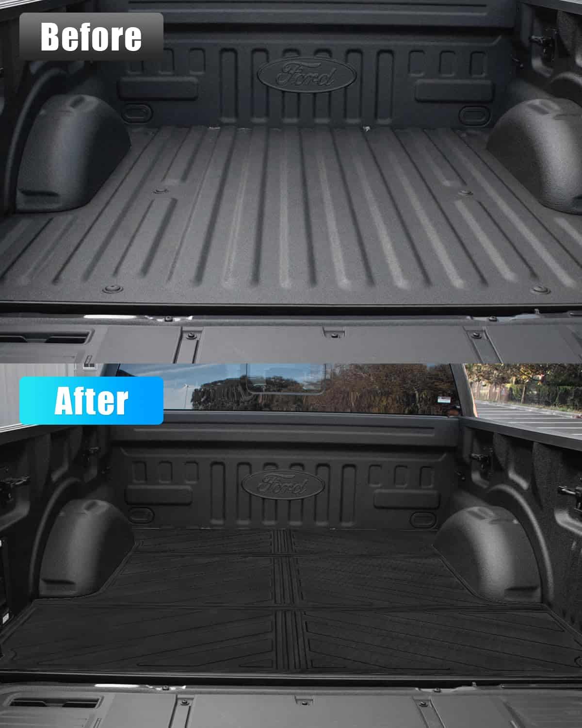 1. Diseño: Según el diseño original del automóvil, nuestro forro de cama para camioneta es adecuado para Ford F150 5.5 pies de 2015 a 2024.