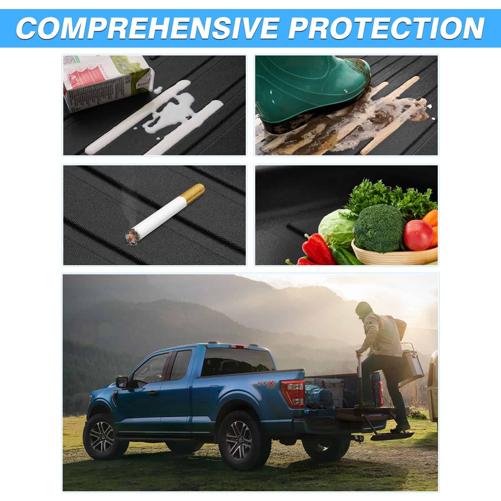 4. Diseño antideslizante para una seguridad mejorada: Equipado con un respaldo antideslizante especial, nuestros revestimientos de cama para camionetas permanecen firmemente en su lugar, evitando que se desplacen durante el transporte. Esta estabilidad adicional garantiza que su carga permanezca segura y protegida.