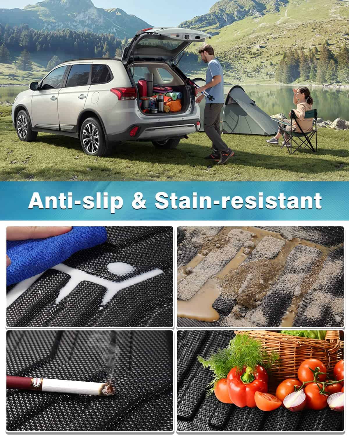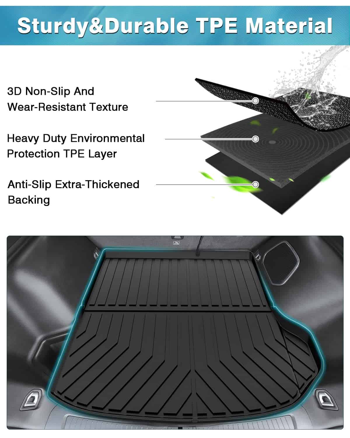 2. Guarda de todas las temporadas y material seguro TPE: El tapete de carga está hecho de materiales TPE duraderos de primera calidad, resistentes al desgaste, antideslizantes e inodoros. El material TPE de alta intensidad y seguro mantiene su flexibilidad en todas las estaciones al tiempo que ofrece una excelente sensación y resistencia extrema al desgaste.