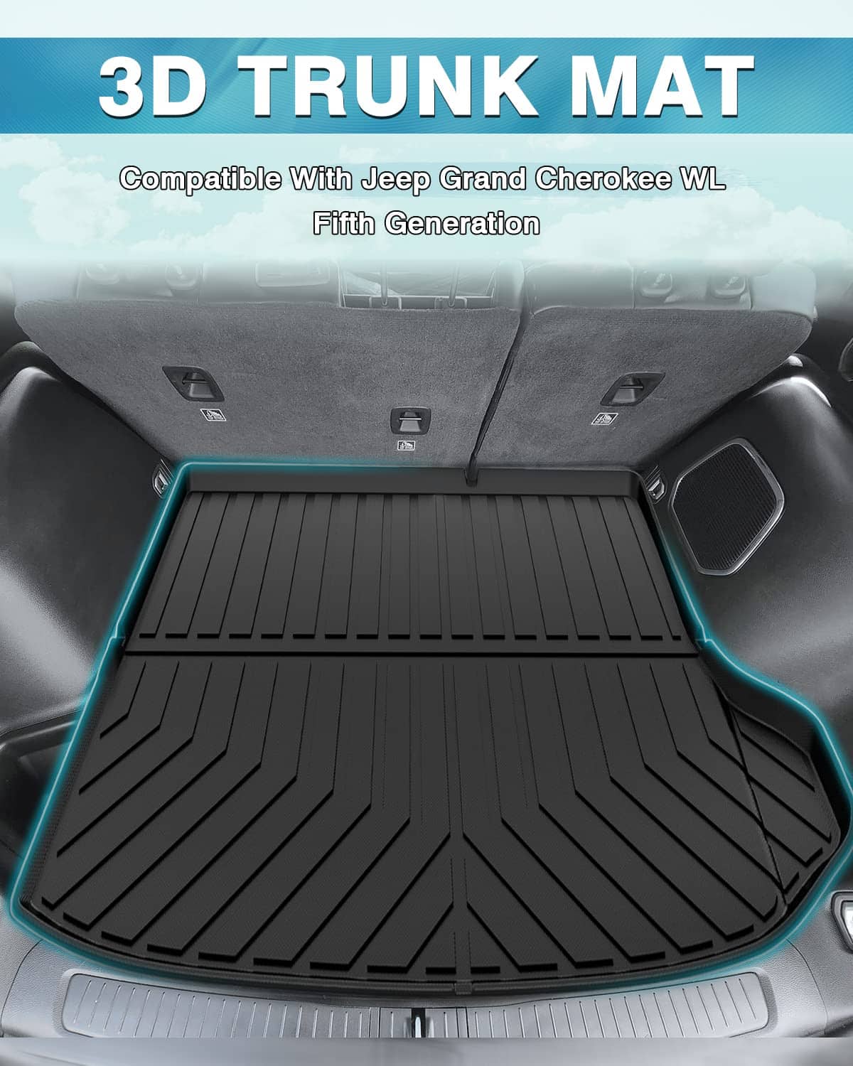 1. Forro de carga para Jeep Grand Cherokee WL: El tapete de maletero es compatible con Jeep Grand Cherokee 2022 2023 2024 (WL) de 5 asientos, detrás de la 2da fila. También es compatible con Jeep Grand Cherokee 4XE Plug in Hybrid 5 Seat 2022-2024. Atención: No es compatible con Jeep Grand Cherokee WK2 de 2022. No es compatible con Jeep Grand Cherokee L. No es compatible con Jeep Grand Cherokee 2011-2021.
