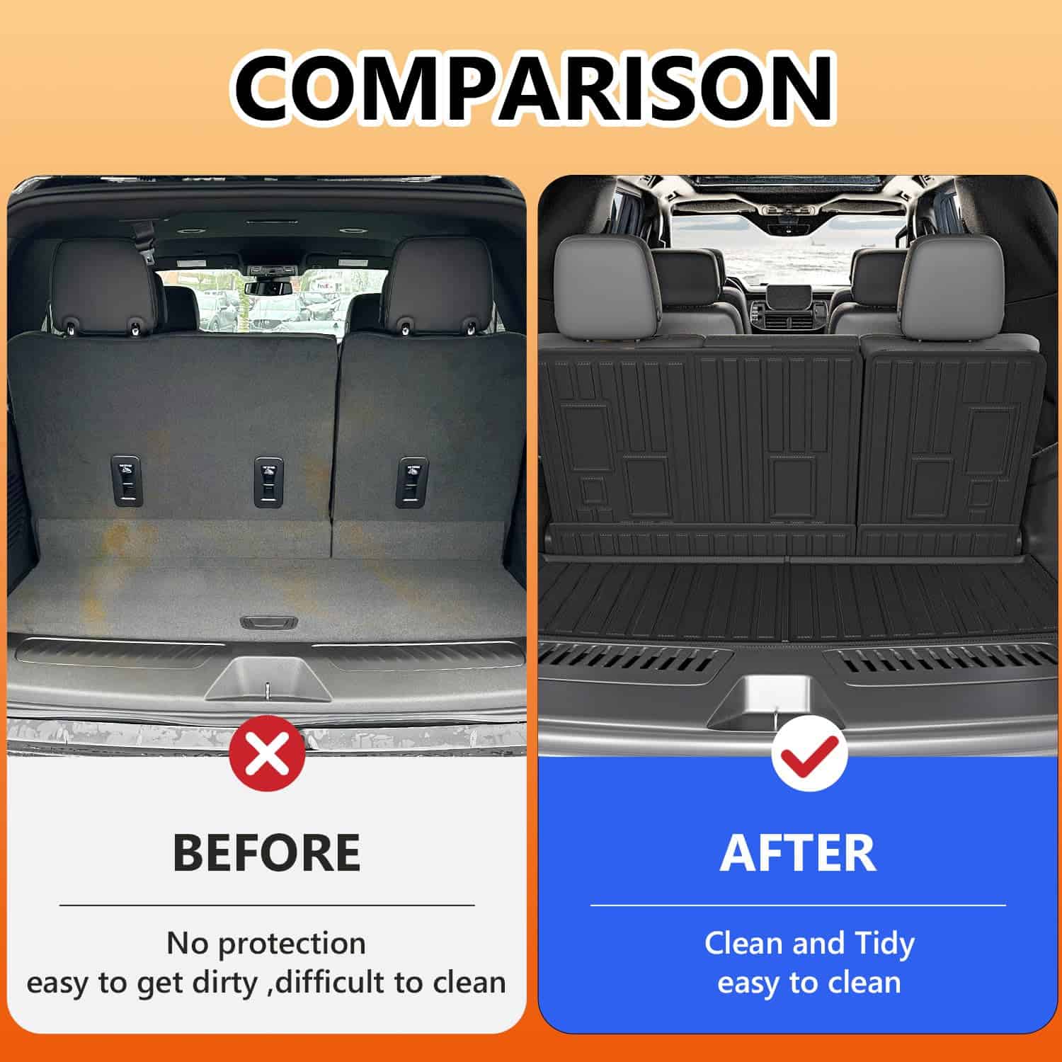 4. Fácil de Instalar: No es difícil instalar los tapetes de carga y respaldo de reemplazo para Chevy Tahoe. Simplemente sáquelos del paquete y colóquelos en el lugar correcto. Los tapetes del respaldo tienen velcro, que puede mantenerlo unido al asiento trasero de manera segura.