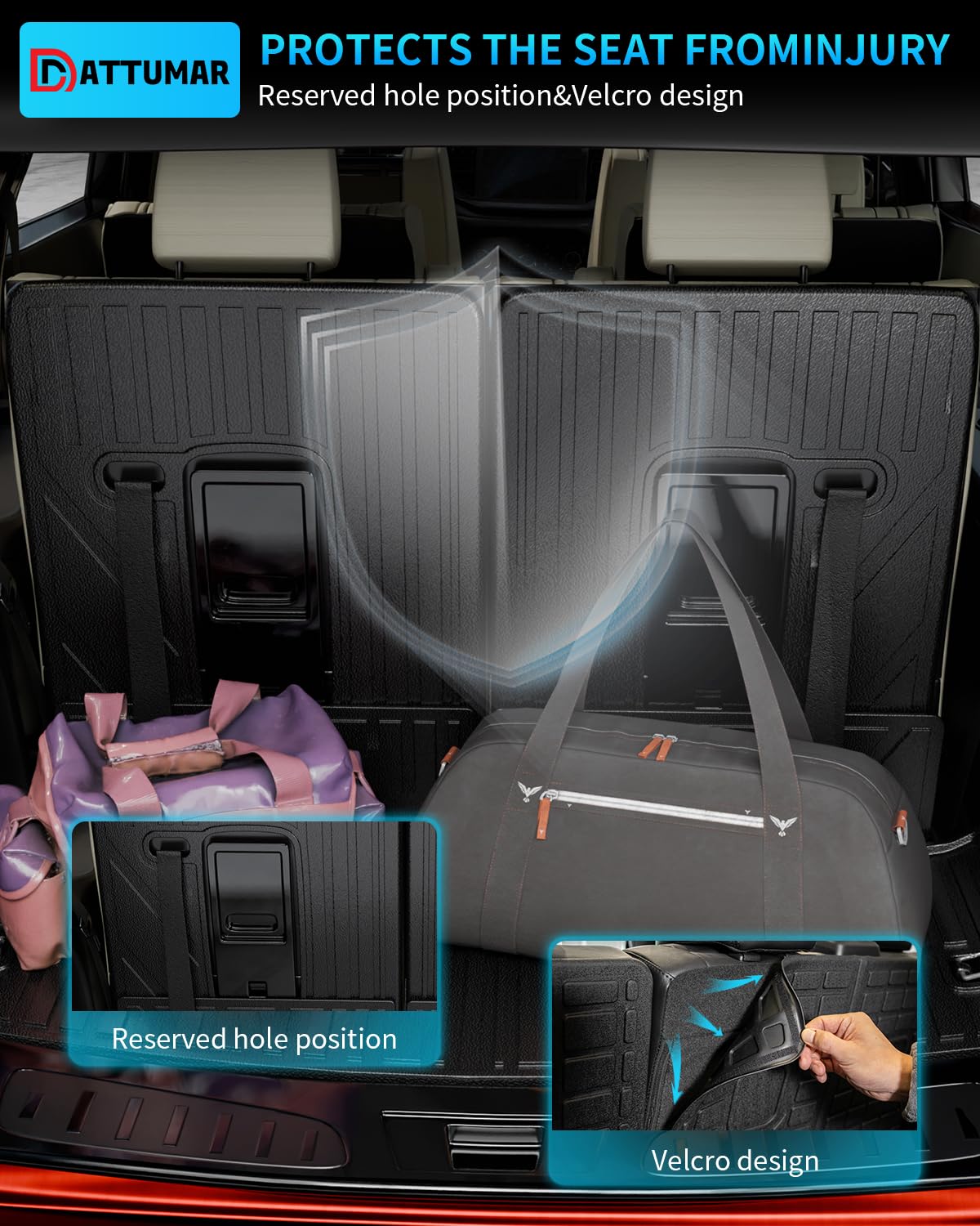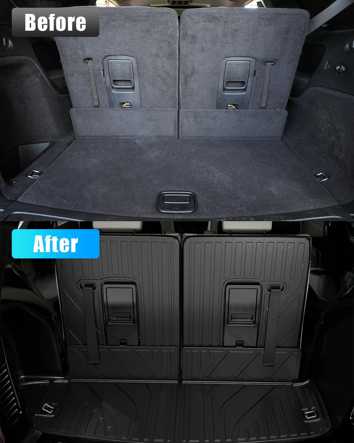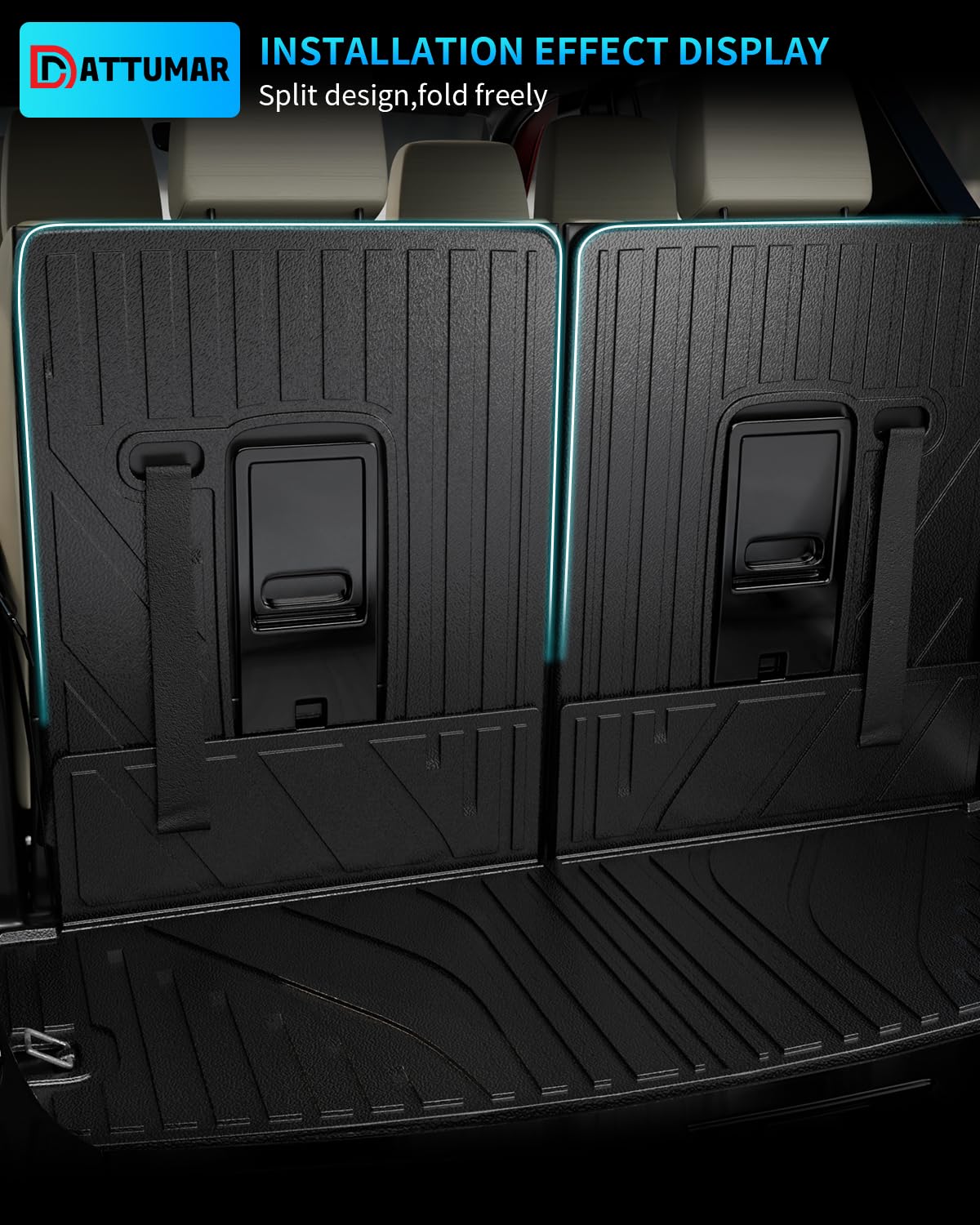 1. Diseño: Según el diseño original del automóvil, nuestro tapete de maletero y los tapetes de respaldo son adecuados para Dodge Durango de 2016 a 2025 de 6 y 7 asientos.