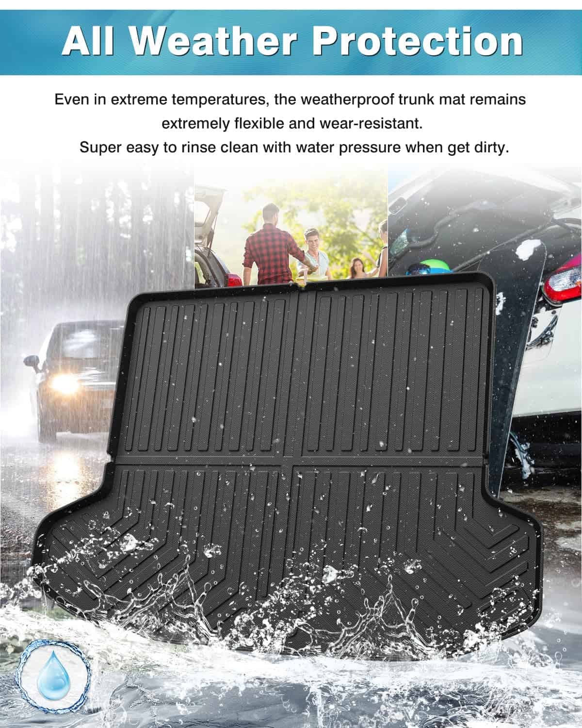 3. Antideslizante y atrapa suciedad: Con una superficie texturizada antideslizante y canales únicos, este forro de carga a prueba de mal tiempo puede atrapar eficazmente arena, agua, barro, suciedad, lluvia y lodo. Con la protección del forro de maletero, no tienes que preocuparte de que el equipaje raye o manche la alfombra original.
