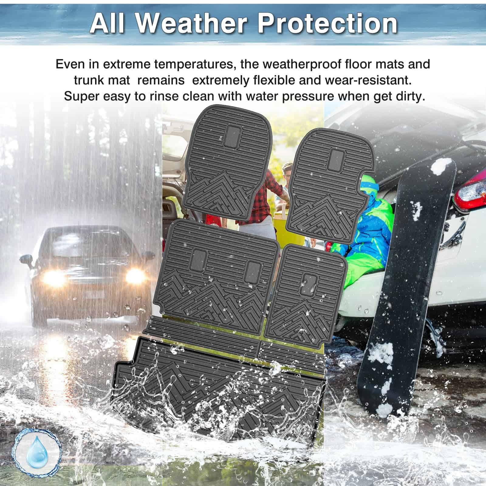 4. Superficie antideslizante y trampa de residuos: Con una superficie texturizada antideslizante y canales únicos, este forro de carga resistente a la intemperie para Chevy/Chevrolet Traverse puede atrapar eficazmente arena, agua, barro, suciedad, lluvia y barro. No tendrás que preocuparte de que tu equipaje raye o manche la alfombra original gracias al tapete para maletero.