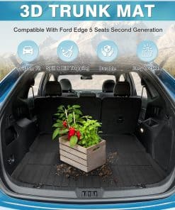 Forro de carga 3D que evita manchas o desorden en su área de carga. Protección contra la nieve, barro, arena, agua salada y más. Diseño digitalizado 3D de precisión medida a las especificaciones exactas de la cabina. Respaldo antideslizante que mantiene el forro en su lugar. Superficie texturizada duradera, no tóxica e inodora para una apariencia refinada y máxima protección interior. Incluye 1 forro de carga para Ford Edge de 5 asientos del año 2016-2022. Nota: El forro puede llegar deformado debido al embalaje y envío, pero se puede resolver fácilmente dejándolo al sol por 30 minutos.