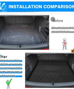 4. Fácil de limpiar Borde más alto del tapete de carga para A4, evitará eficazmente que los líquidos fluyan hacia el automóvil. ¡No se preocupe por los zapatos sucios o la comida que ensucie su automóvil! Nuestro forro impermeable se puede enjuagar con agua directamente, lo que facilita su cuidado.