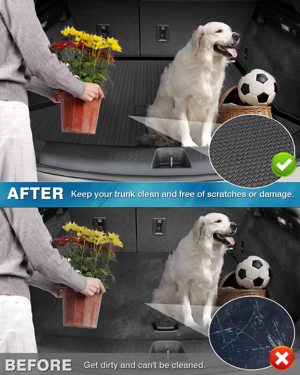 3D | Cómo la marca Mixsuper crea forros de piso y maletero para un ajuste perfecto — Mixsuper Cargo Liner evita que las manchas o el desorden de cualquier tipo dañen su área de carga — Cuenta con una estructura innovadora y única. — Protección contra todo tipo de clima contra nieve, barro, arena, agua salada y más. — El diseño digitalizado 3D específico del vehículo está medido con precisión a las especificaciones exactas de la cabina (estamos hablando de menos de 1mm de espacio). — Las alfombrillas no solo repelen las manchas y la permeación del agua, sino que ofrecen un uso duradero. — El respaldo antideslizante las mantiene en su lugar sin dañar la alfombra original. — Sus revestimientos de maletero 3D Mixsuper están respaldados por una garantía de 12 meses. — Superficie texturizada duradera, no tóxica y sin olor para una apariencia refinada y máxima protección interior. Paquete incluido: 1 forro de maletero para Cadillac XT4 Luxury, Premium Luxury, Sport Crossover 2019-2022. Aviso: el forro puede estar deformado y tener un gran pliegue en el medio debido al embalaje y envío (dobladura en el medio), pero se resolvió fácilmente. Simplemente deje el forro en el camino bajo el sol durante 30 minutos y volverá a su forma original.