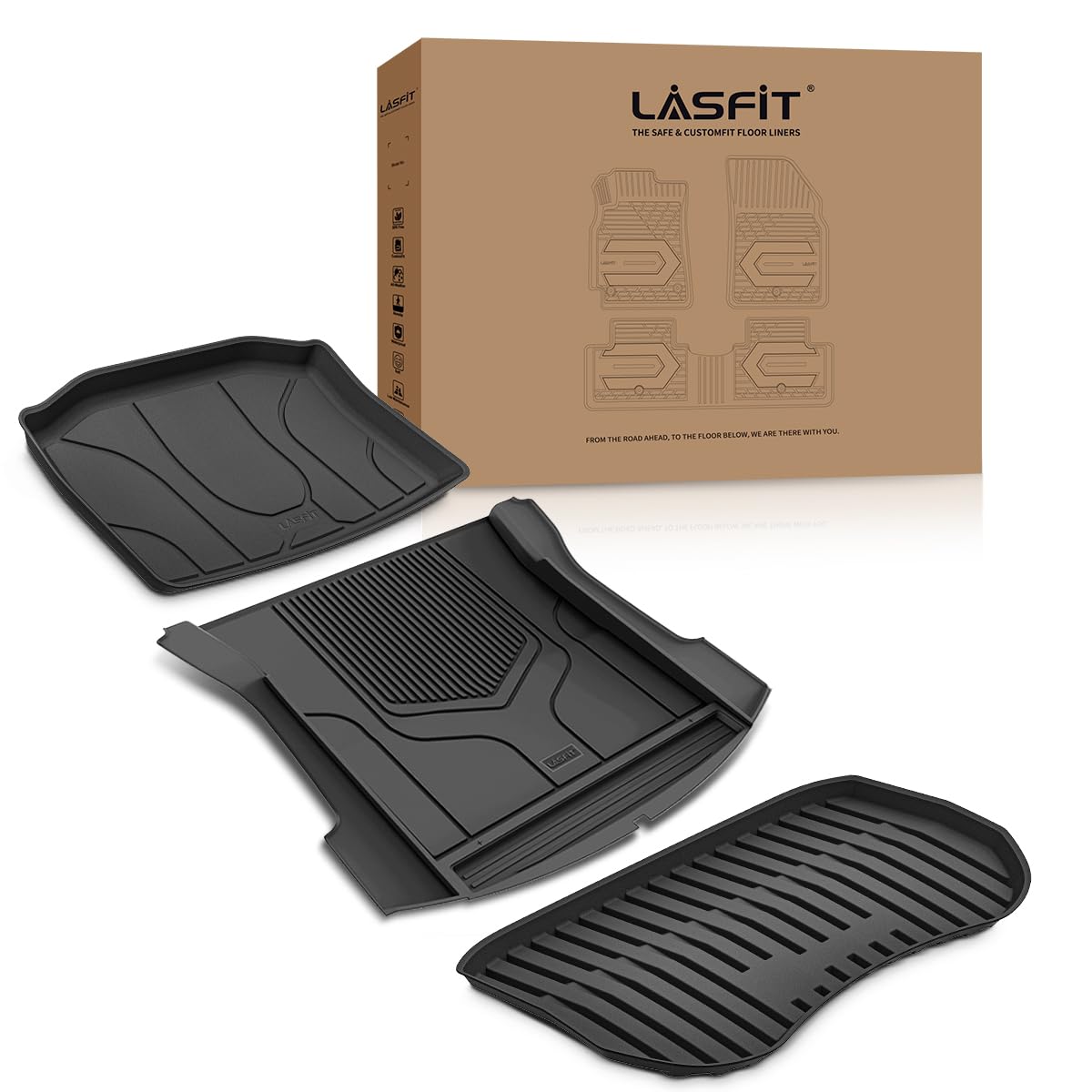 Forro de Maletero LASFIT para Tesla Model 3 2021 2022 2023 TPE Todo Clima Tapete Maletero Trasero Almacén Personalizado Forro de Carga (Juego de 3 Tapetes 2021+)