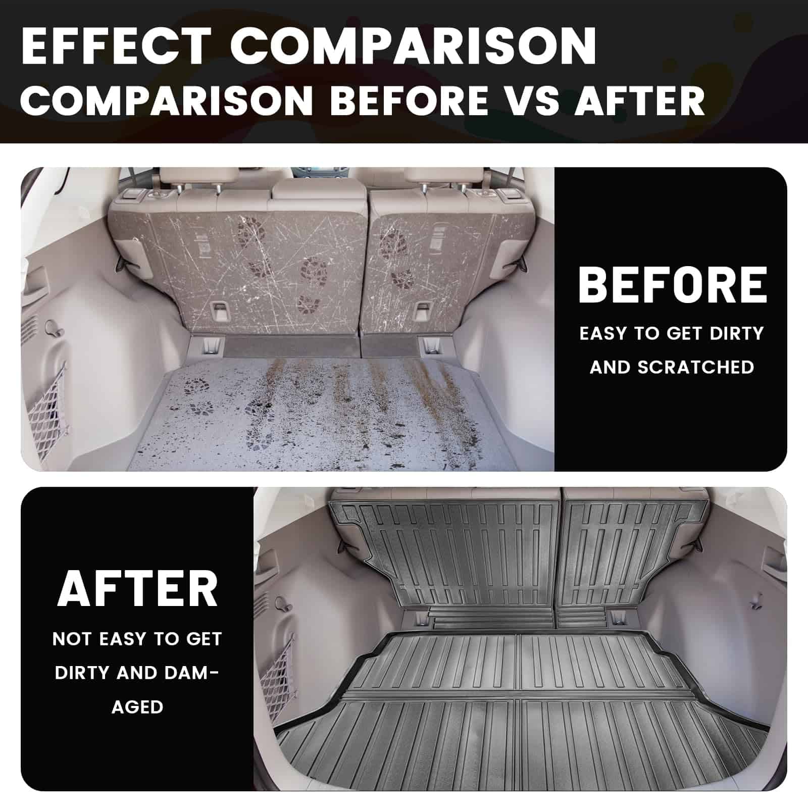 3. Función: El forro de maletero para CRV puede proteger su automóvil de arañazos. Los artículos en el maletero no se moverán más. Puede mantener su auto limpio y ordenado.