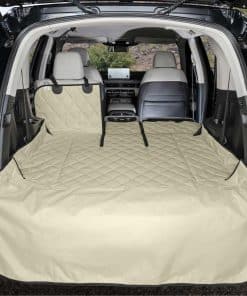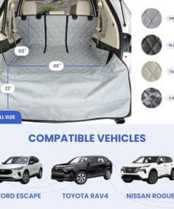 1. AJUSTE PERSONALIZADO PARA SU VEHÍCULO: El diseño patentado del forro para maletero de SUV de 4Knines está diseñado para adaptarse a vehículos con asientos divididos 60/40 o 50/50 y pasos de carga central. Con medidas de 46″ x 82″ (con una solapa de parachoques de 22″), ofrece un ajuste perfecto para la mayoría de los SUV y minivans, brindando una protección confiable para el área de carga de su vehículo.